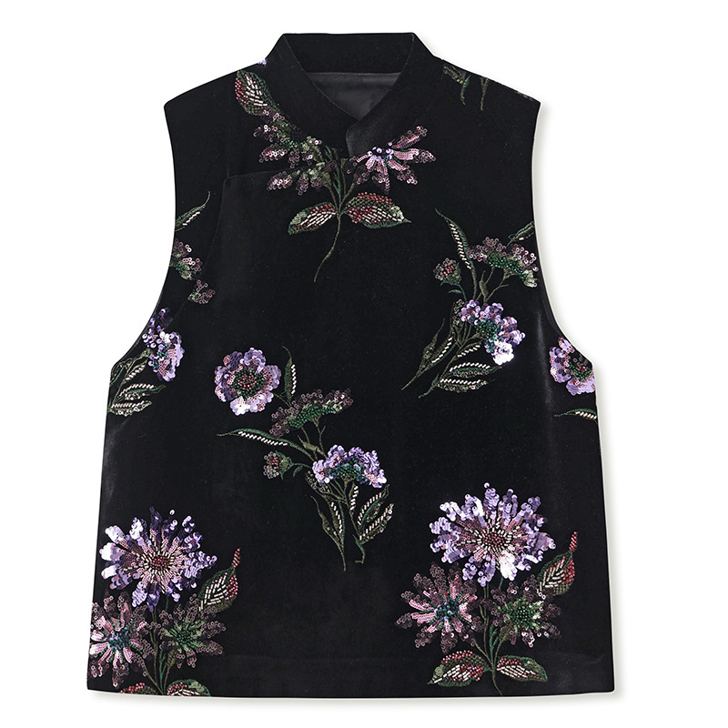 이른 봄 국가 스타일 새로운 비싼 스타일 빈티지 세퀸 보라색 황금 꽃 조끼 여성을위한 새로운 중국 스타일 우아한 올 매치 조끼 N1014스토어 가기