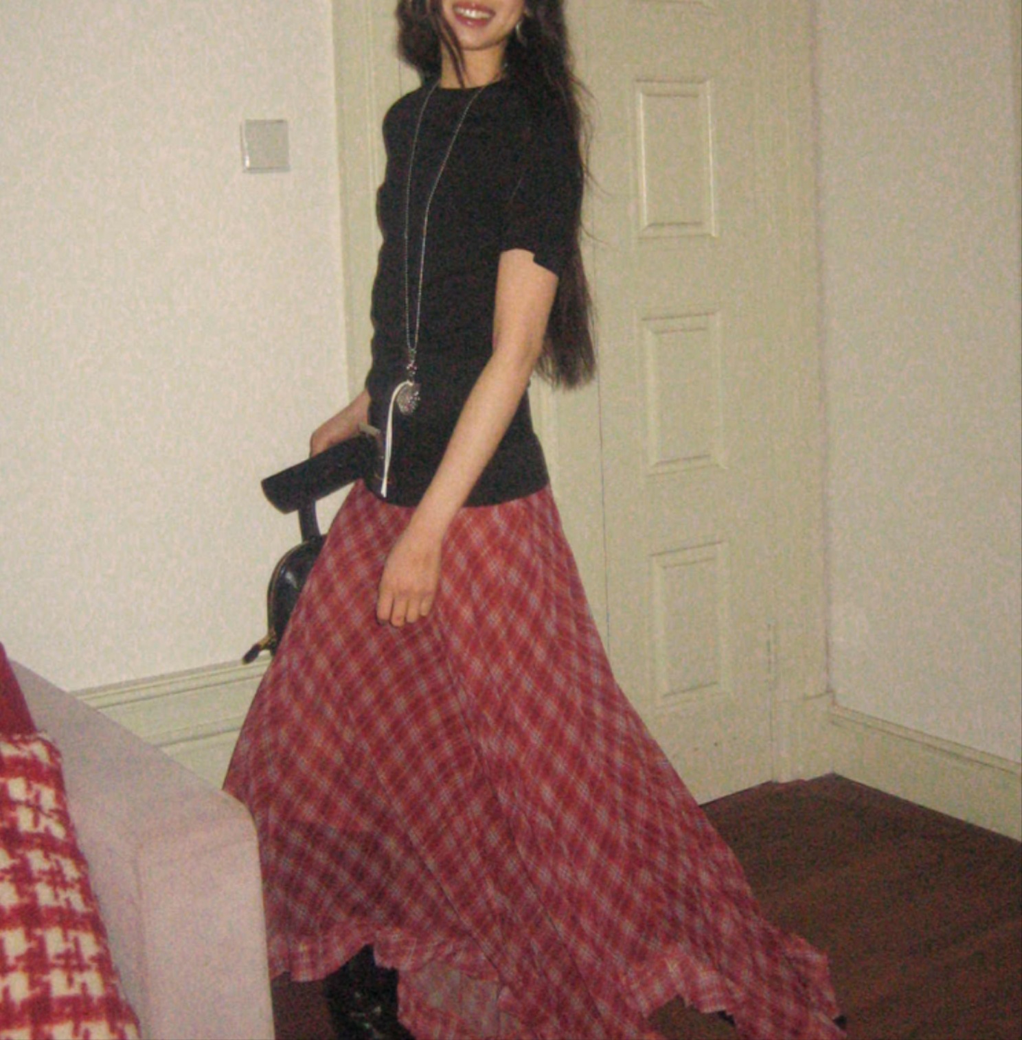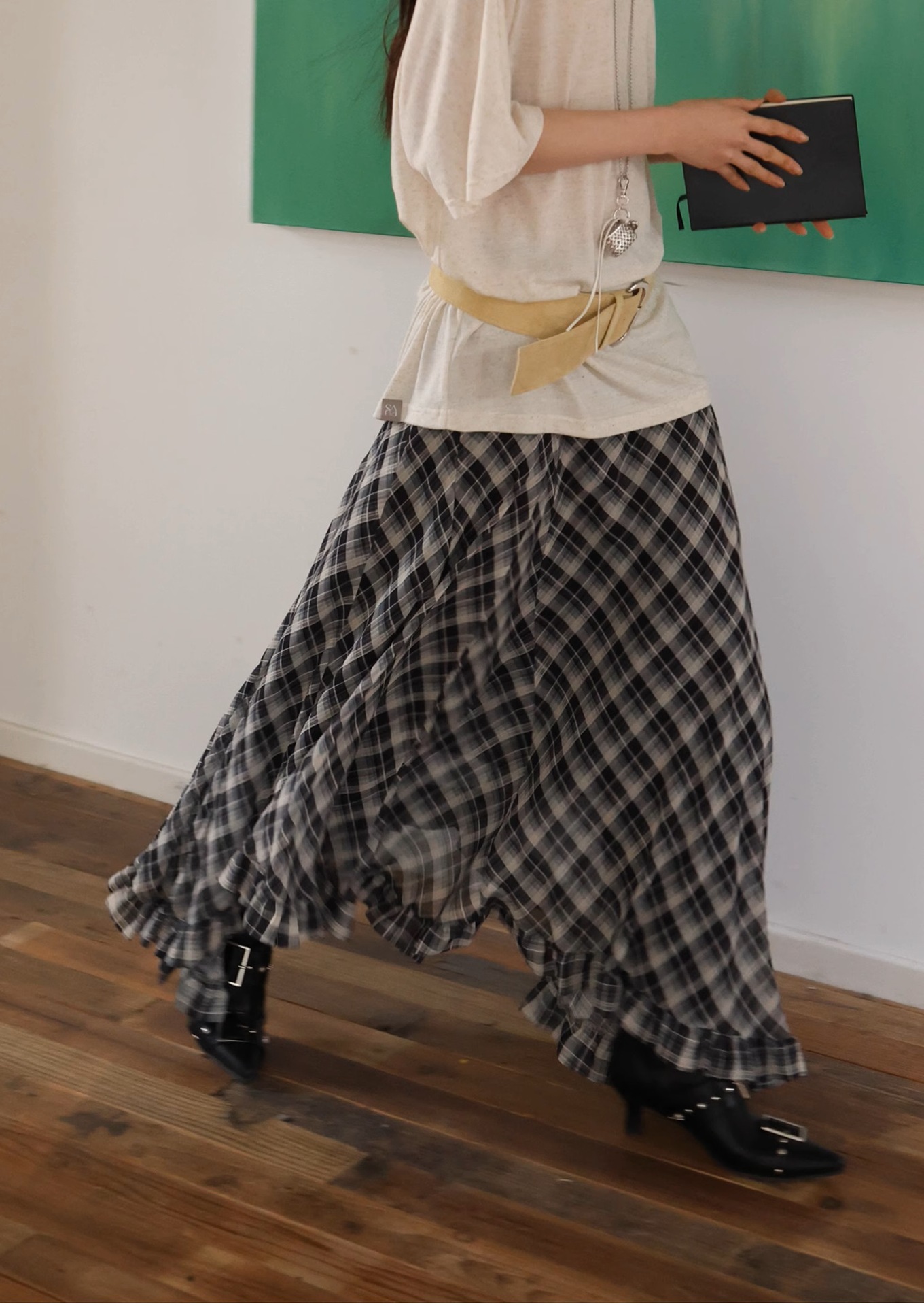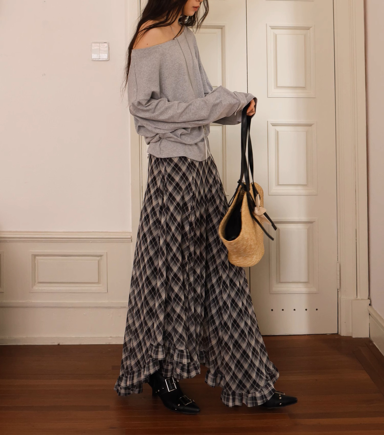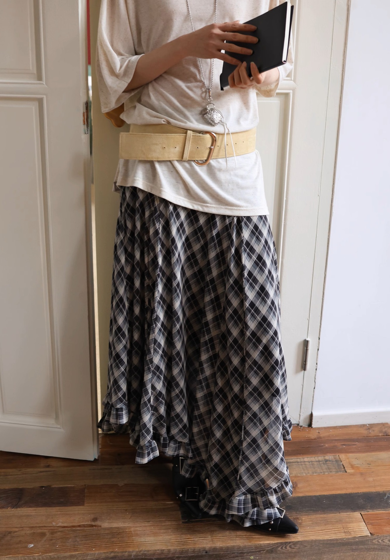 SUPERSCAPE Subo 이른 봄 레트로 2 색 격자 무늬 중간 허리 불규칙한 귀 머리 중간 길이 쉬폰