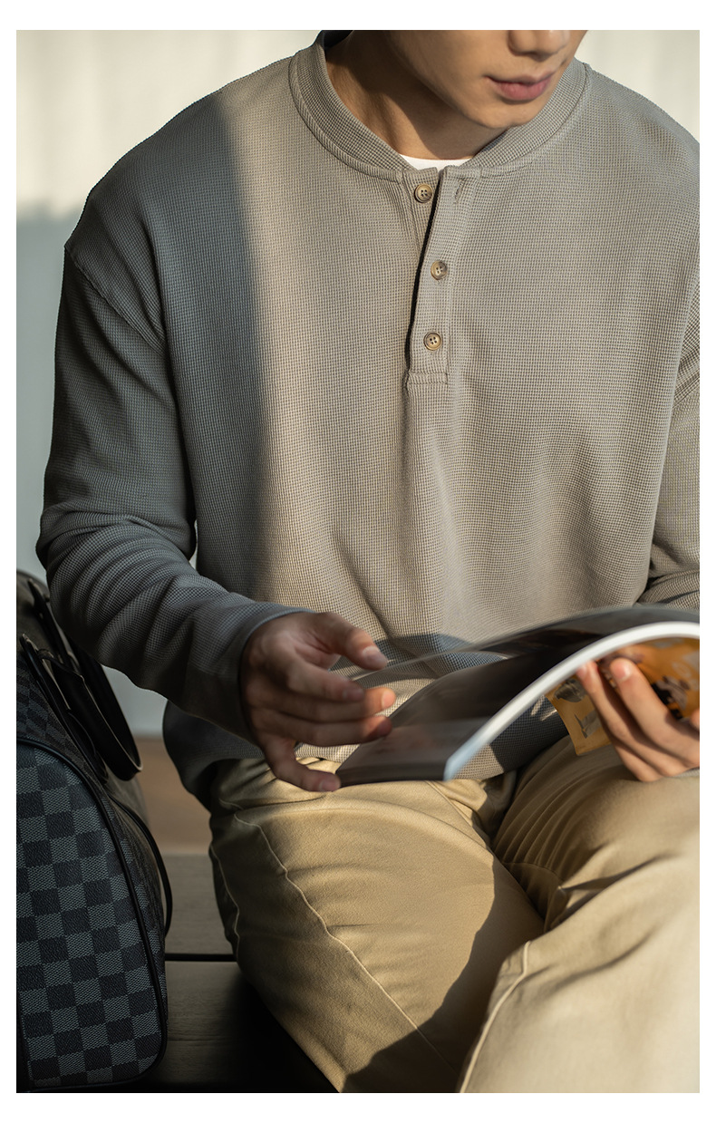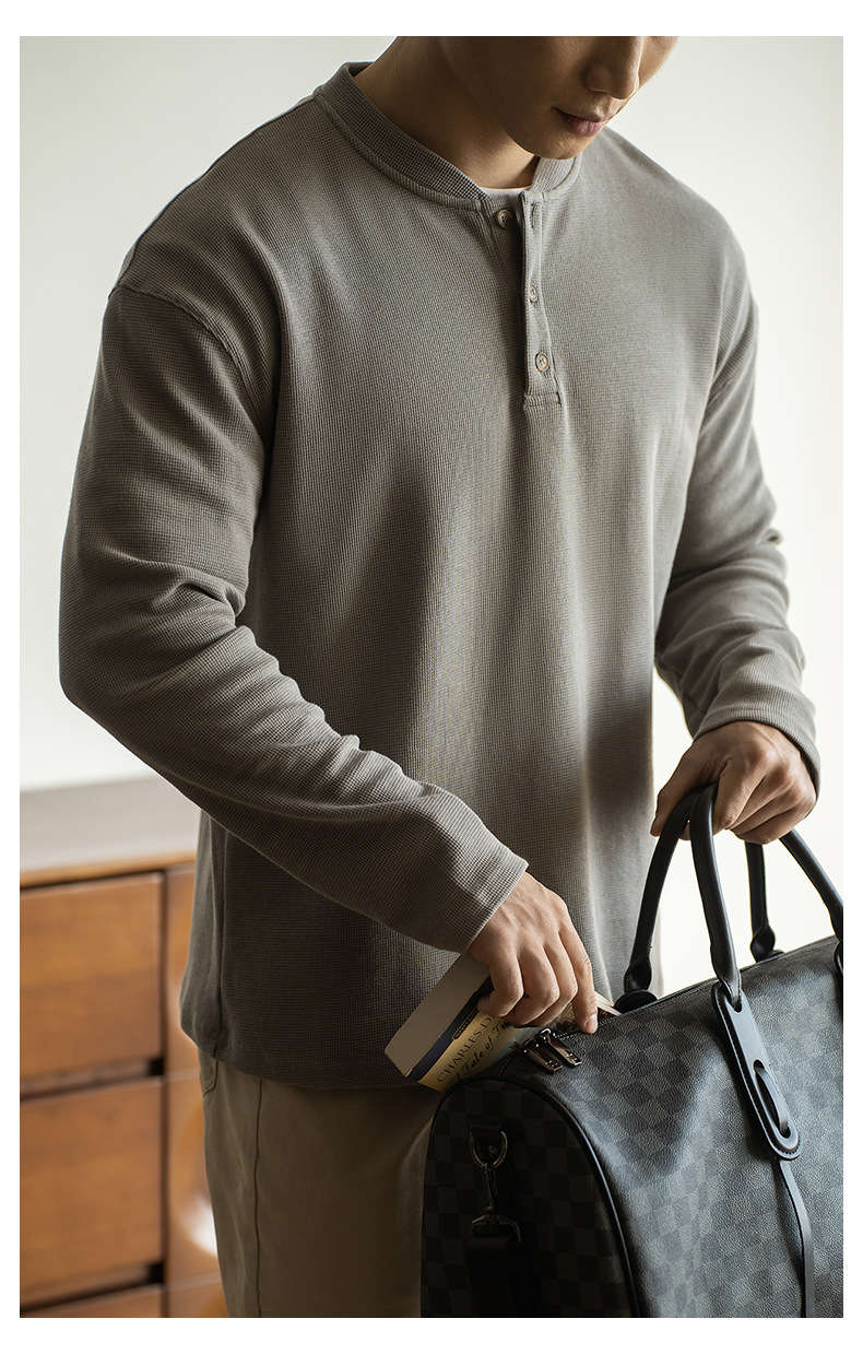 일본식 와플 야구 칼라 긴팔 티셔츠 남자 2025 봄 반대로 주름 느슨한 통근 캐주얼 베이스 셔츠스토어 가기