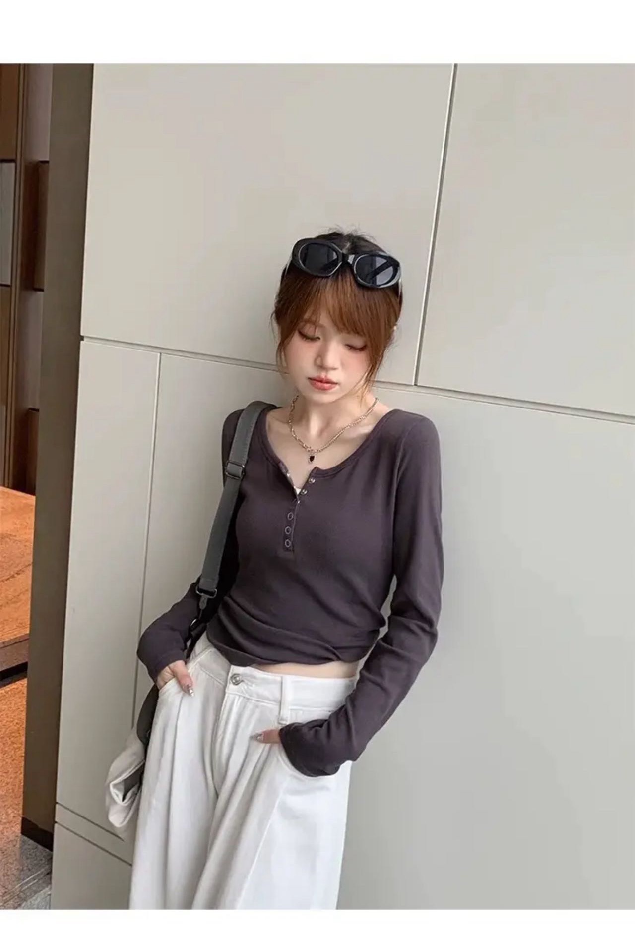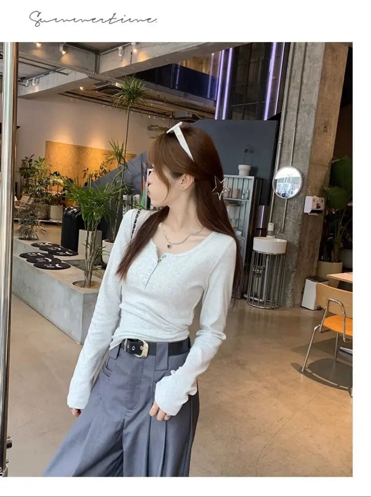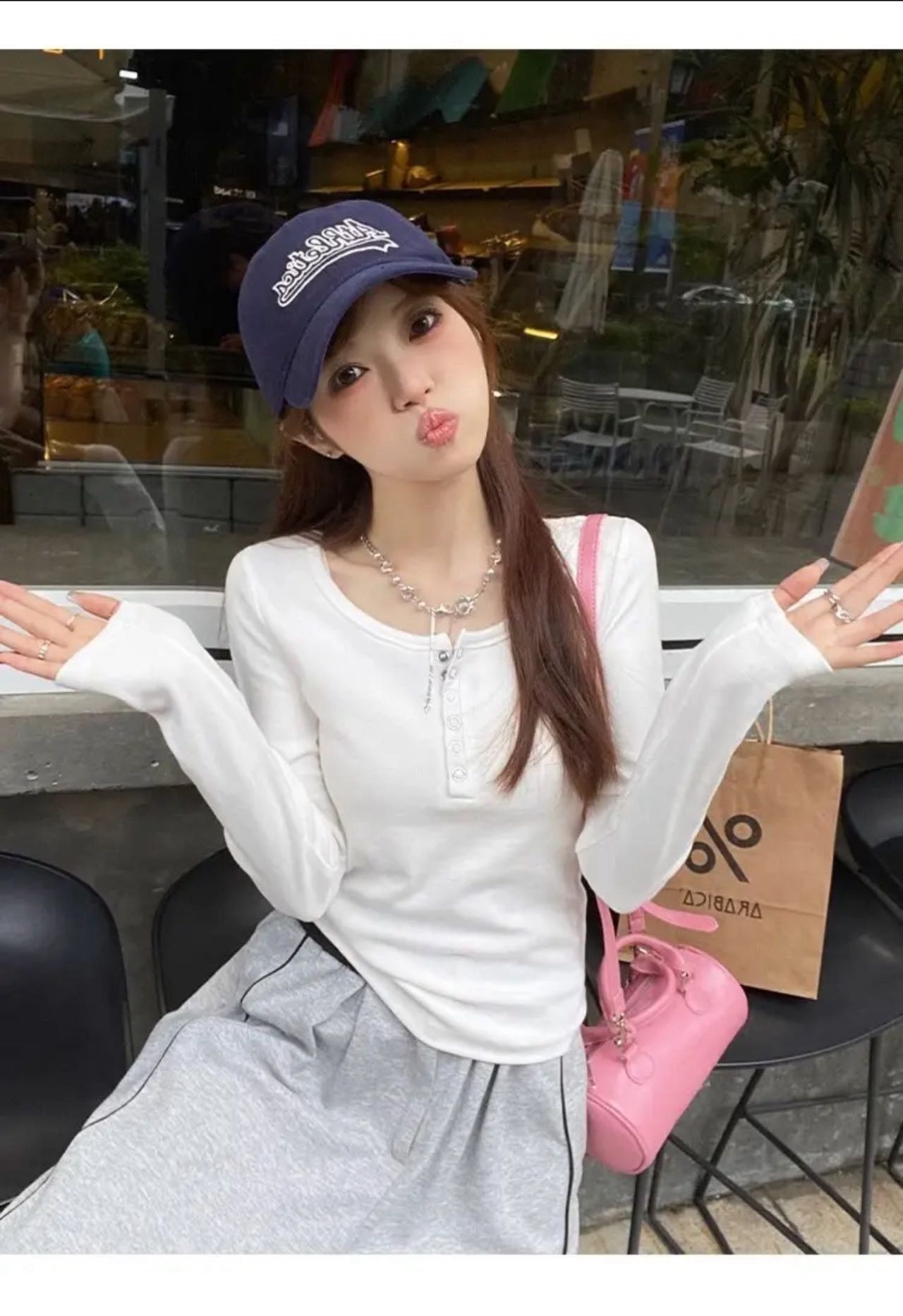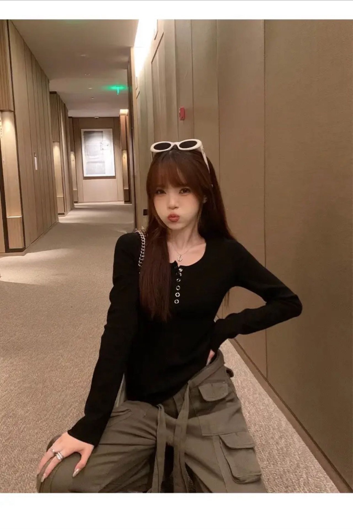 크루 넥베이스 셔츠 여성 내부 착용 아우터 봄 가을과 겨울 슬림핏 슬리밍 올 매치 솔리드 컬러 티셔츠 긴팔 베이스 셔츠
