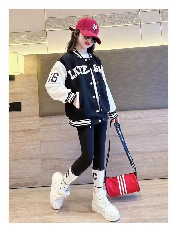 2025 여자 어린이 의류 봄 가을 겨울 코트 패션 유행 공격적인 야구 세트 여자 어린이 자켓 가을 옷
