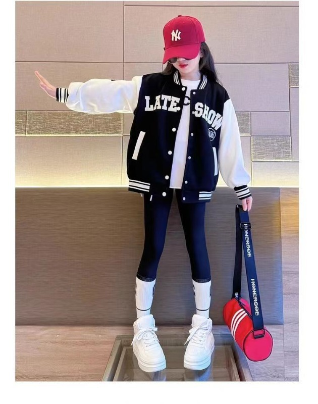 2025 여자 어린이 의류 봄 가을 겨울 코트 패션 유행 공격적인 야구 세트 여자 어린이 자켓 가을 옷스토어 가기
