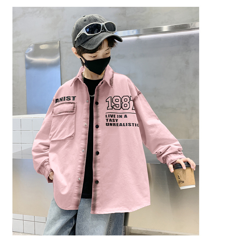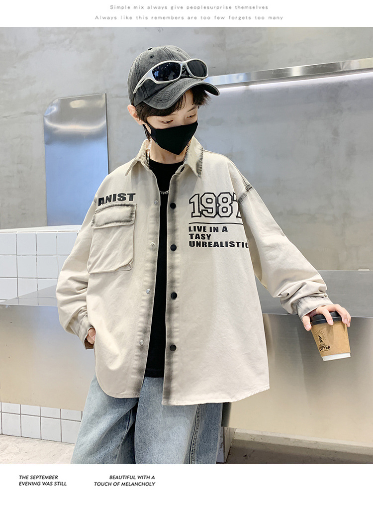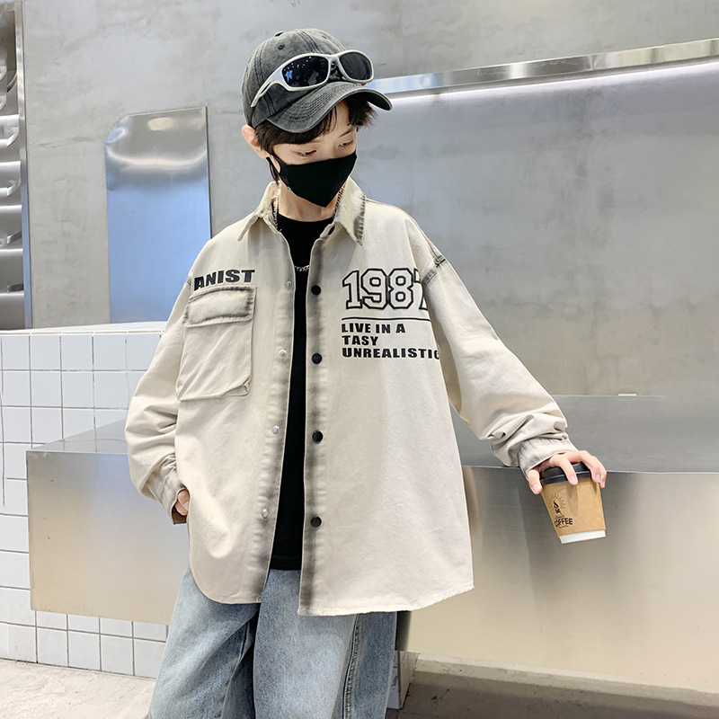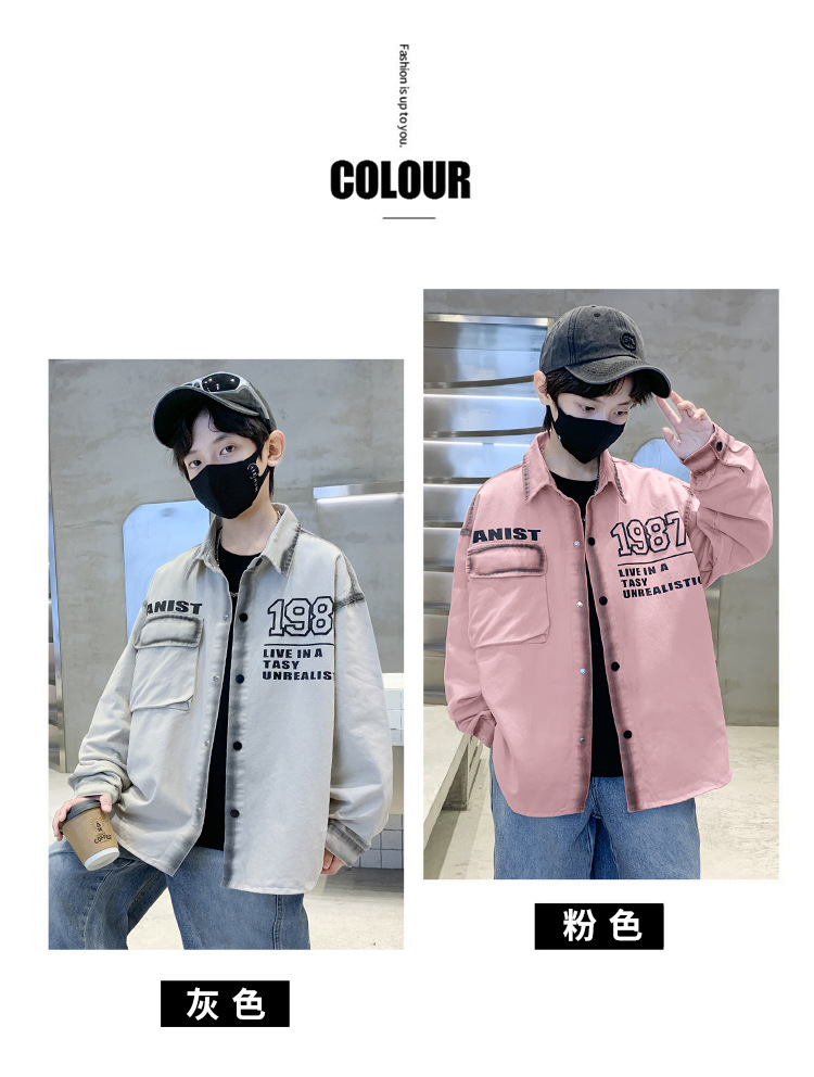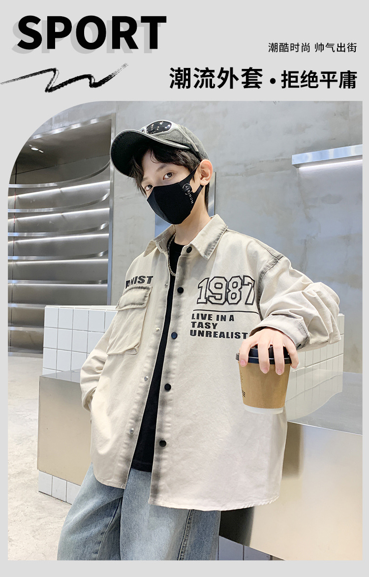 소년의 봄 편지 면 셔츠 코트 2025 새로운 어린이 서양식 캐주얼 재킷 윈드브레이커 봄과 가을 옷