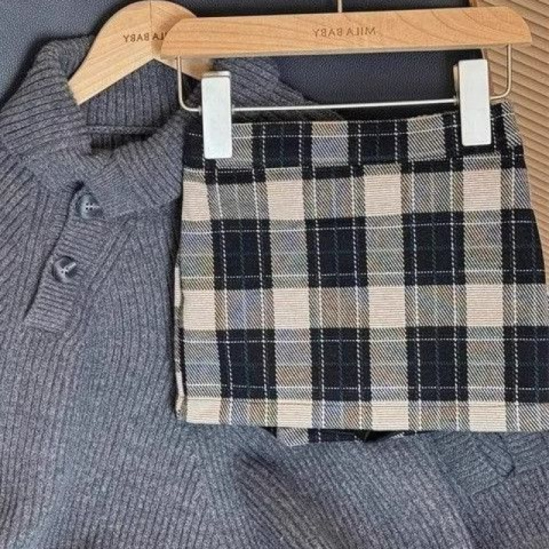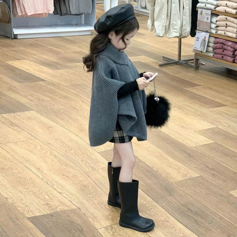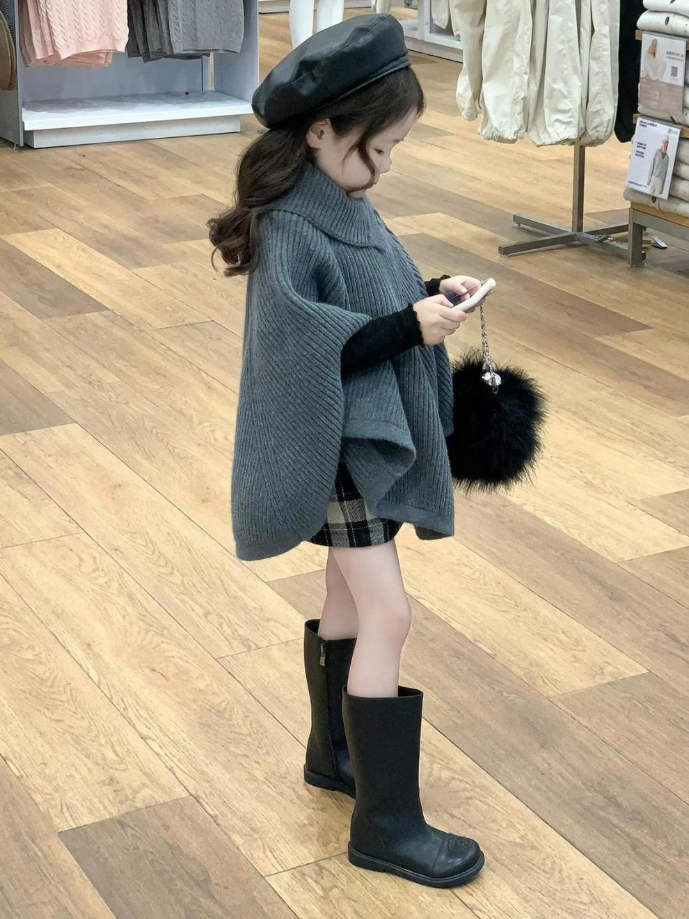 한국 스타일 소녀 2025 가을 겨울 새 그레이 핏 케이프 재킷 큰 어린이 흑백 격자 무늬 스커트 세트스토어 가기
