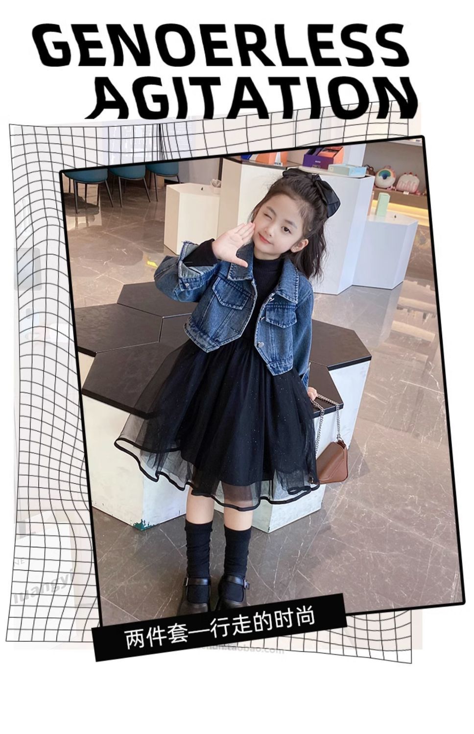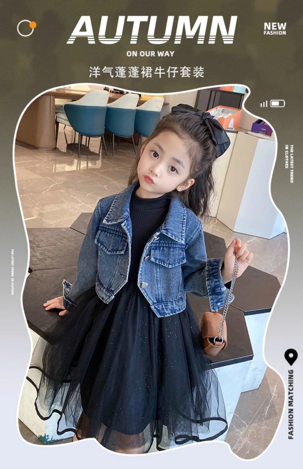 2024 년 이른 봄 새 원피스 소녀의 봄 원피스 어린이 치마 세트 소녀 서양식 봄과 가을 생일 공주 치마스토어 가기