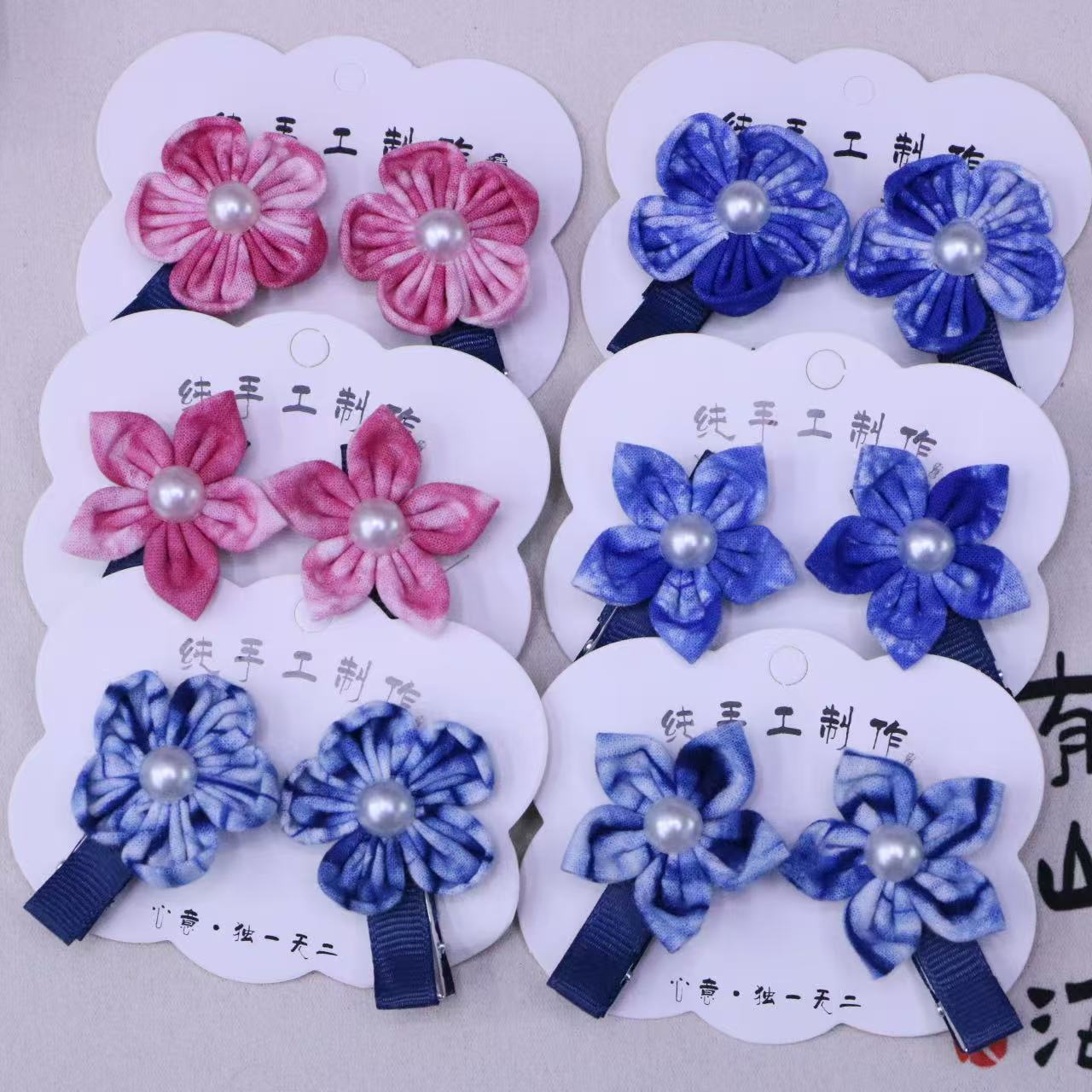 윈난 달리 타이 다이 패브릭 헤어핀 소녀의 꽃 헤어핀 헤드웨어 소녀 아기 어린이 헤어 액세서리