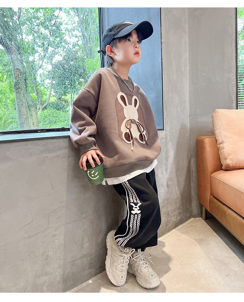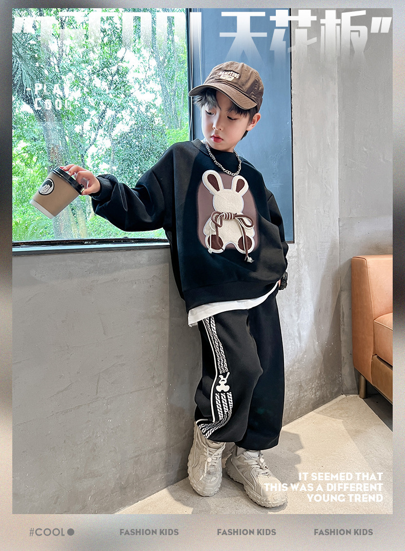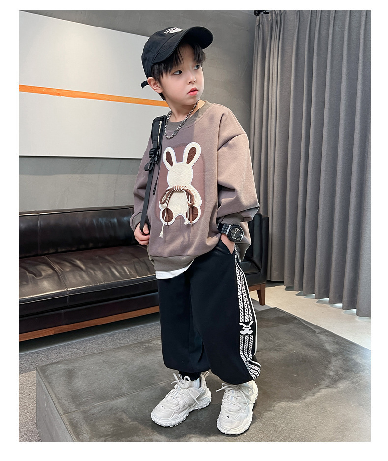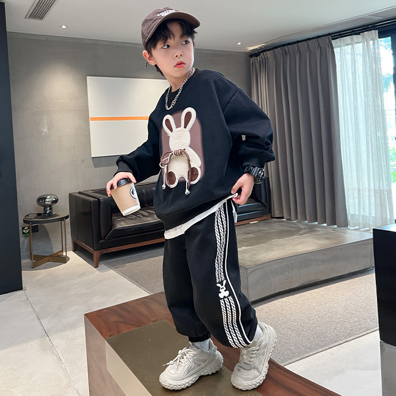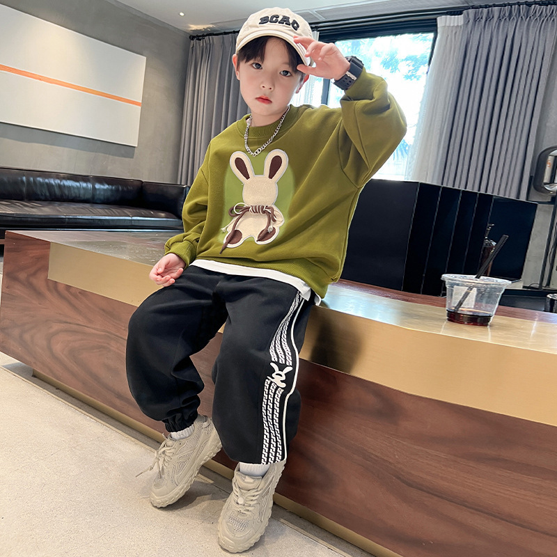 소년 세트 가을 원피스 2025 새로운 서양 스타일 유행 소년 잘생긴 봄과 가을 땀 투피스 세트스토어 가기