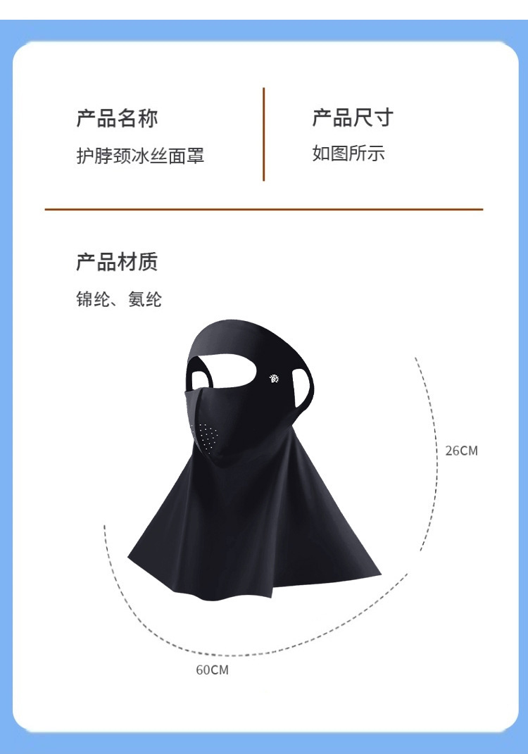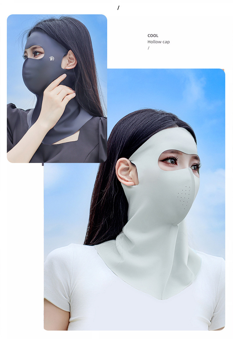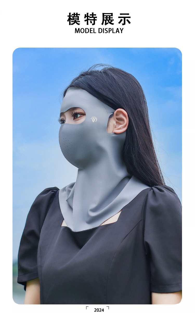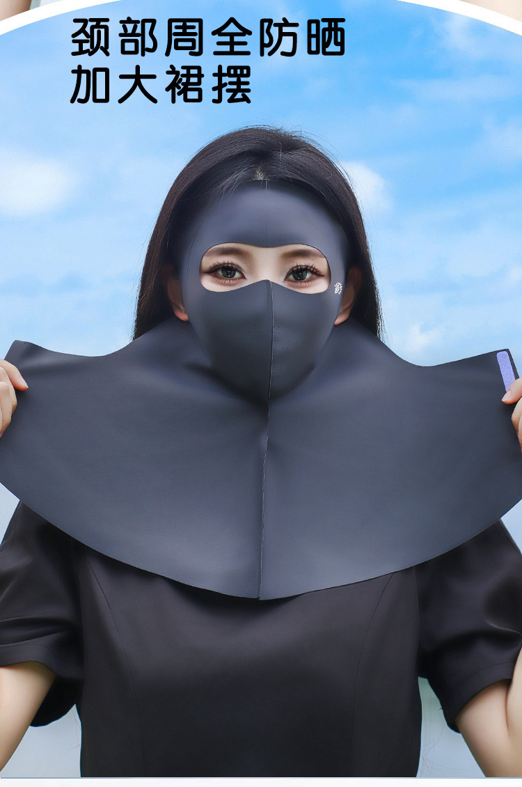 여름 새로운 전면 얼음 실크 선 스크린 마스크 야외 통기성 목 보호 이마 통합 원활한 안티 자외선 마스크