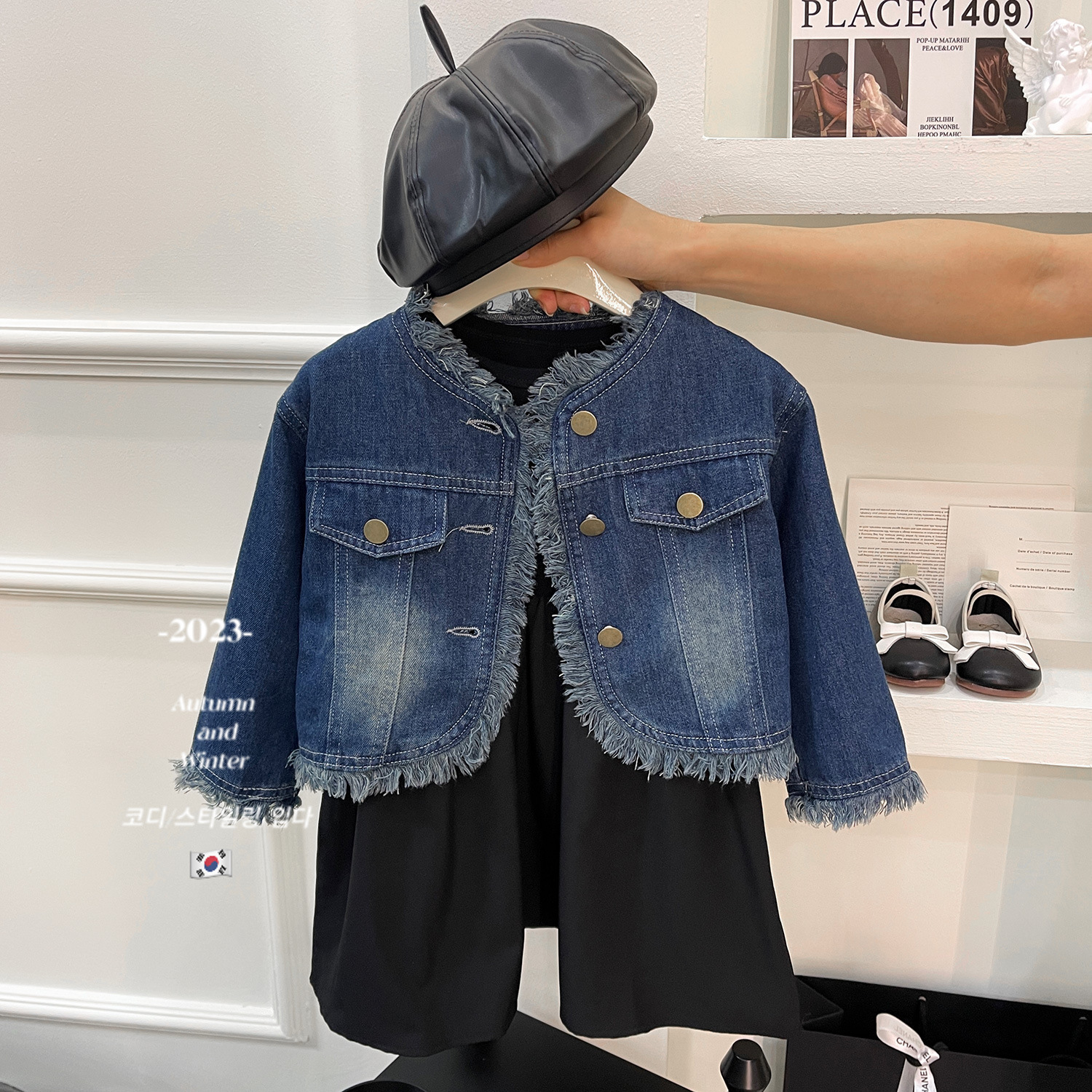 소녀 세트 가을 새로운 한국 스타일 소녀 롱 스커트 데님 코트 투피스 세트 어린이 패션 세트스토어 가기