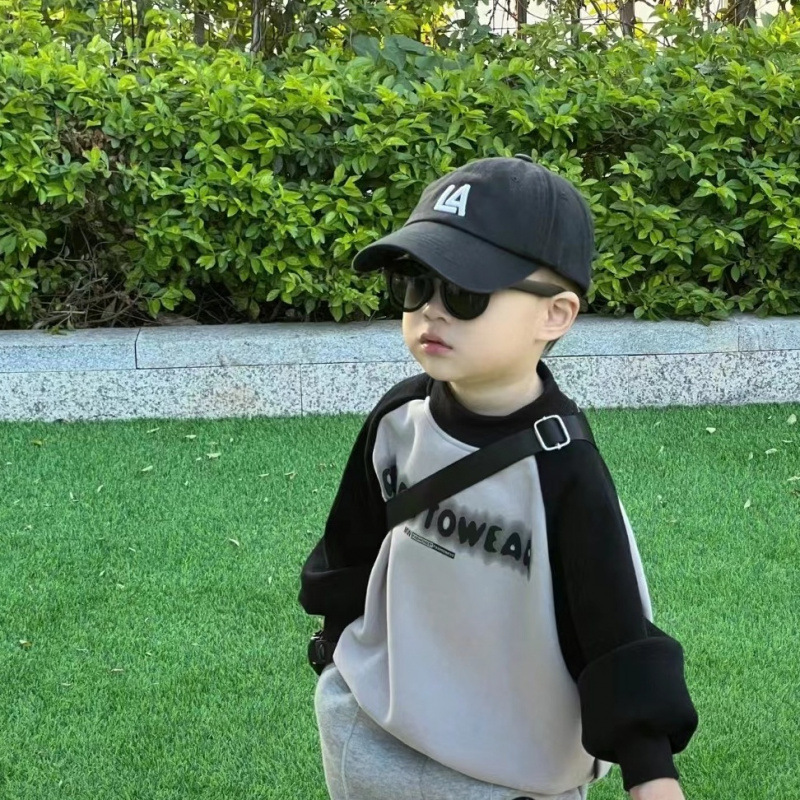 소년 정장 2025 봄, 가을 새로운 스타일 어린이 한국 스타일 풀오버 스웨트 셔츠 베이비 캐주얼 스포츠 스웨트 팬츠 유행 스타일스토어 가기