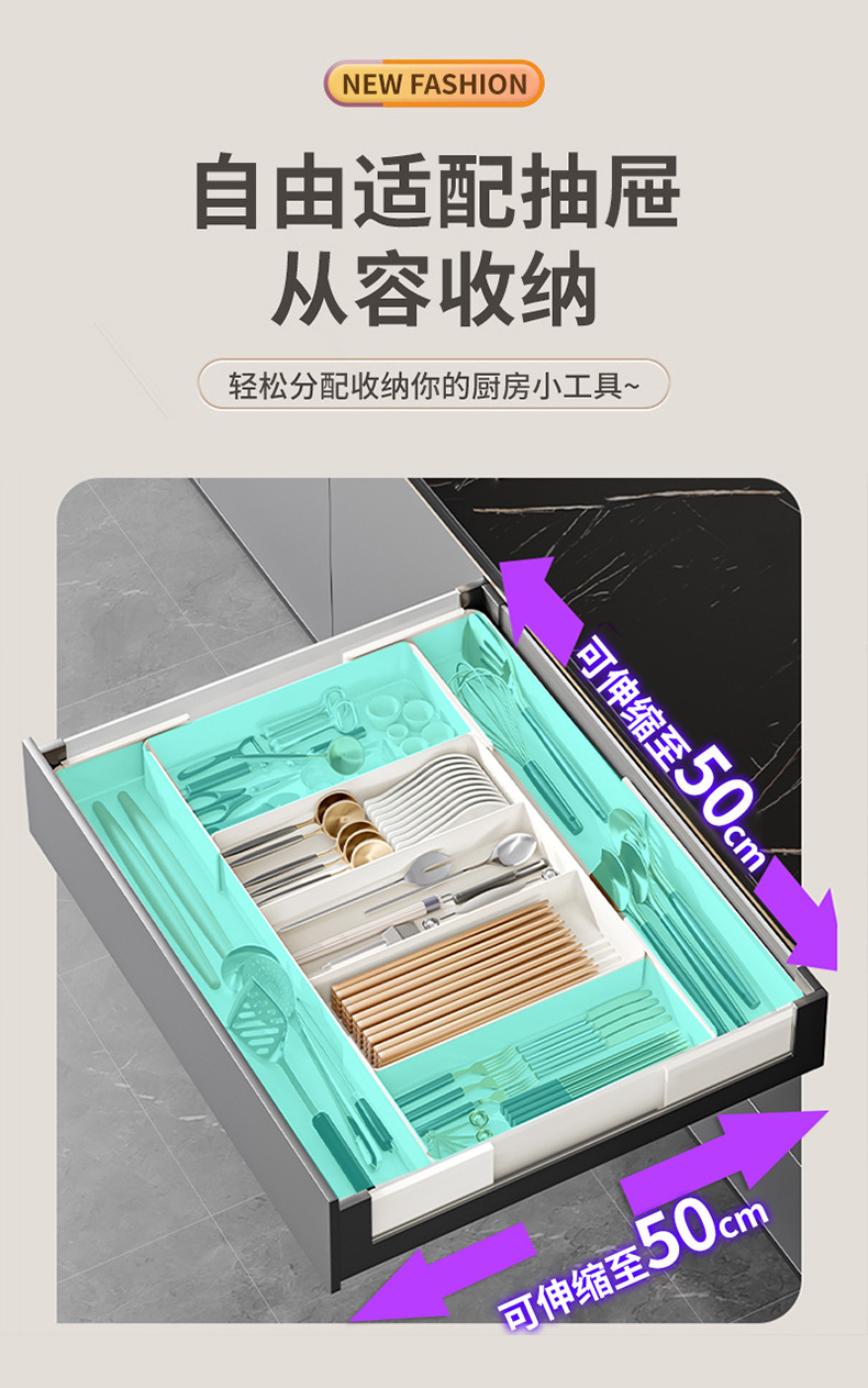 주방 캐비닛 서랍 보관 상자 플라스틱 랩 개폐식 마감 상자 내장 식기 젓가락 숟가락
