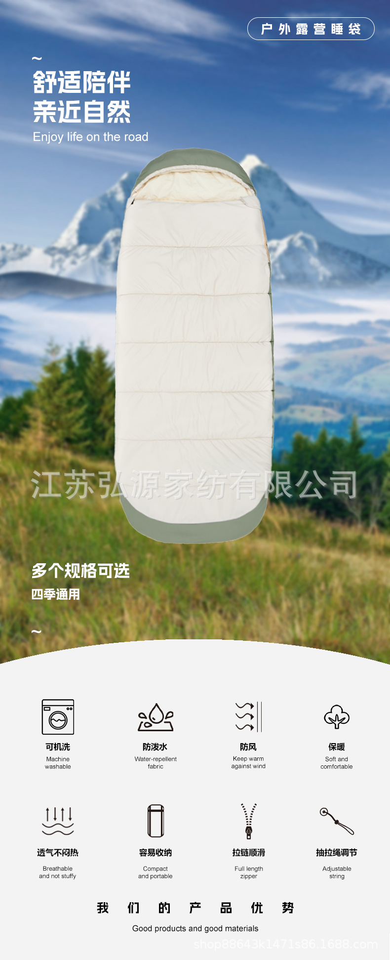 맞춤형 공장 도매 야외 캠핑 방수 비상 성인 두꺼운 따뜻한 사계절 사용 가능한 봉투 침낭스토어 가기