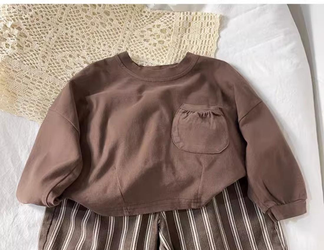 튀긴 거리 ~ 한국 불규칙한 어린이 긴팔 티셔츠 소년 소녀 바지 셔츠 2025 새로운 가을 베이비 코트스토어 가기