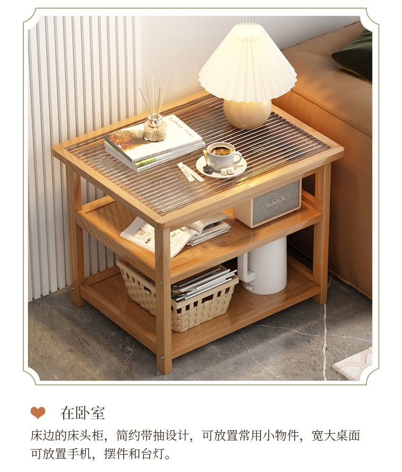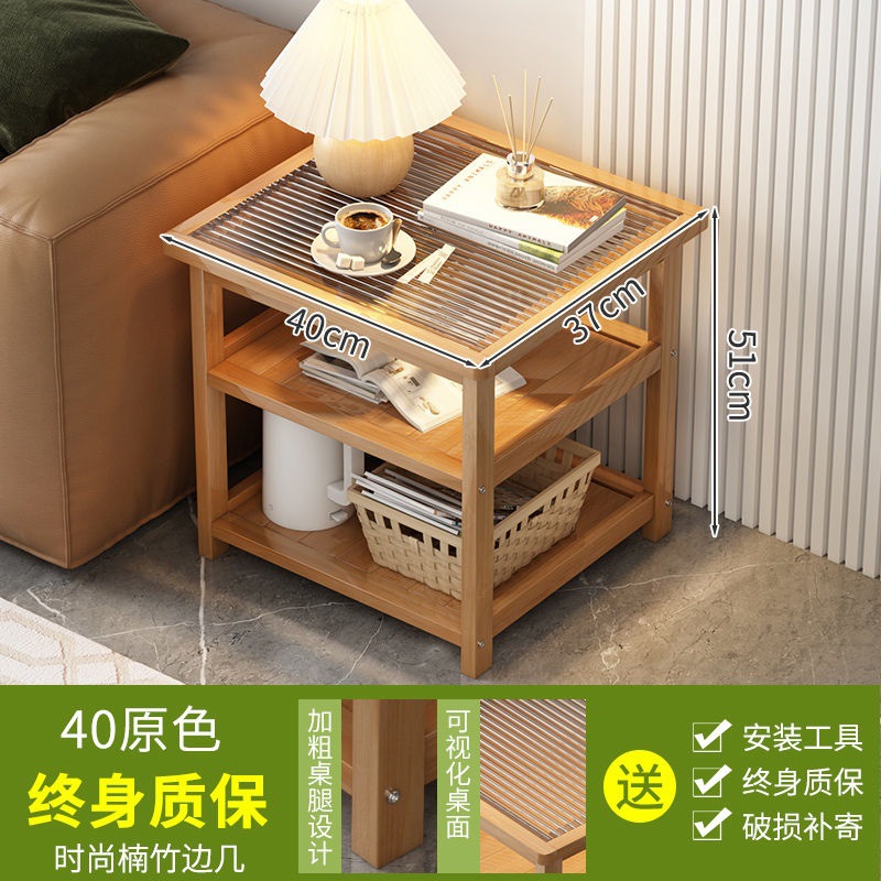 소파 사이드 테이블 유리 거실 가정용 테이블 간단한 작은 아파트 직사각형 코너 테이블 침대 옆 대나무 커피 테이블 캐비닛스토어 가기