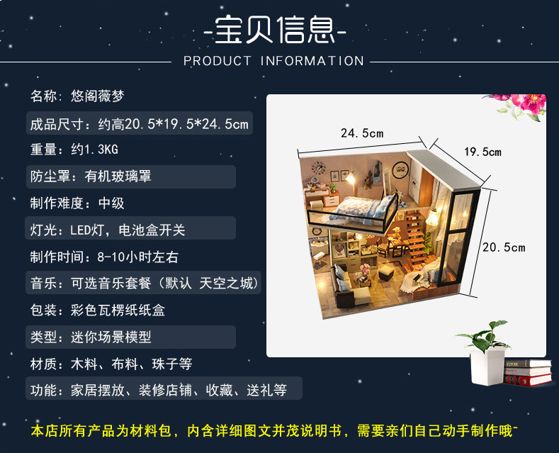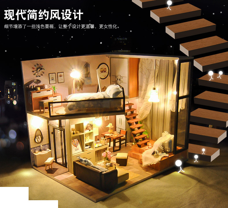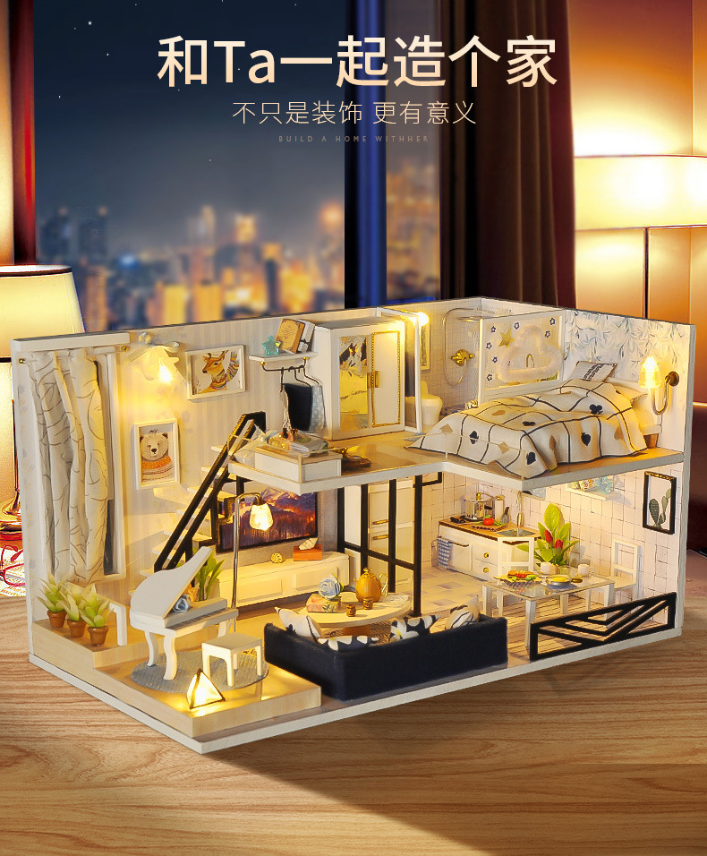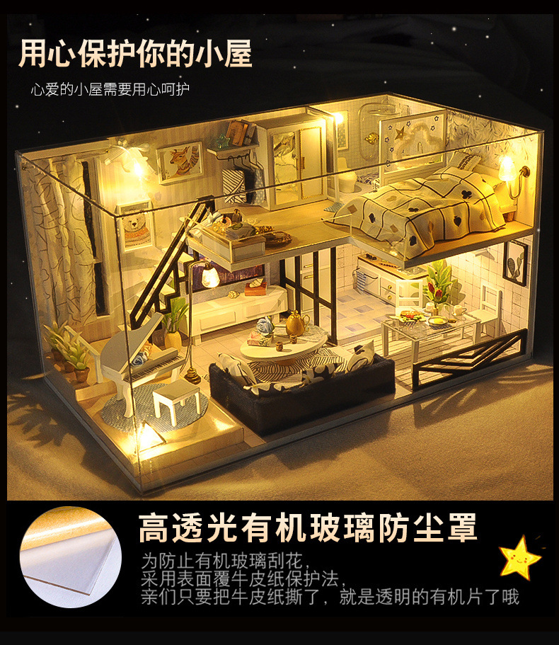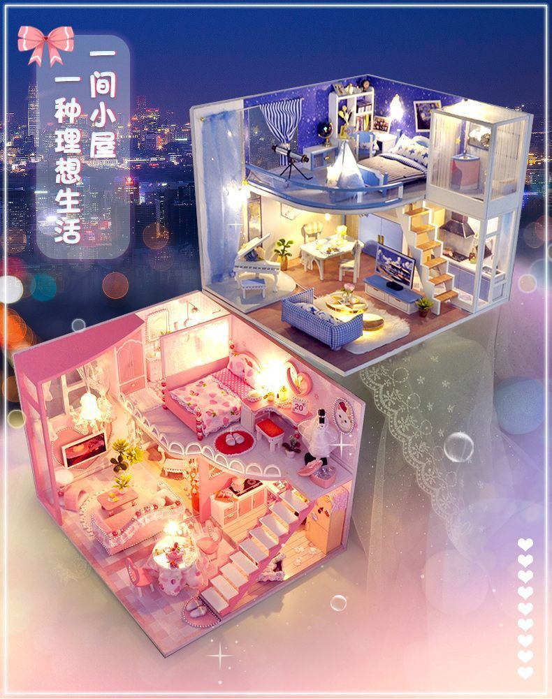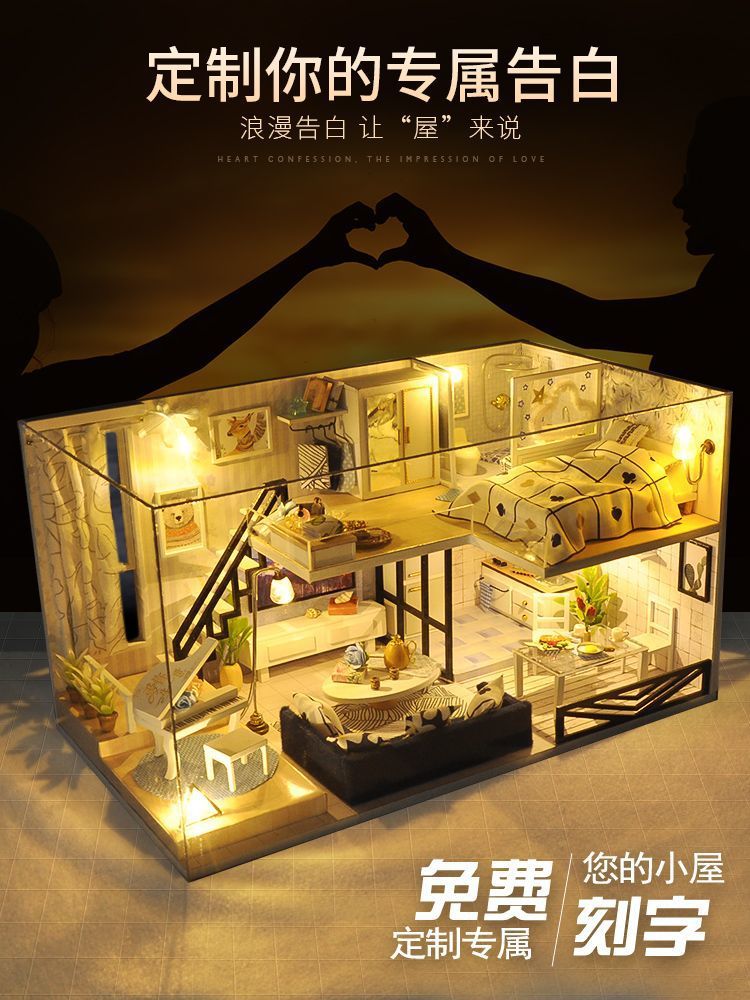 DIY 수제 오두막 조립 건물 집 모델 창조적 인 어린이 장난감 소녀의 여자 친구에게 생일