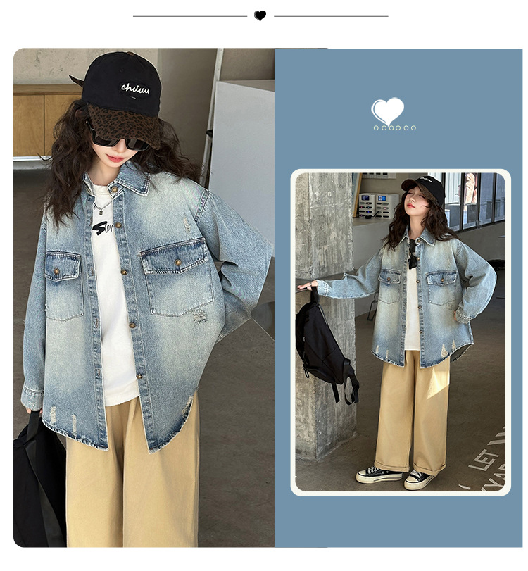 소녀 데님 코트 봄 2025 새로운 어린이 서양식 유행 셔츠 소녀 한국 스타일 탑 봄과 가을스토어 가기