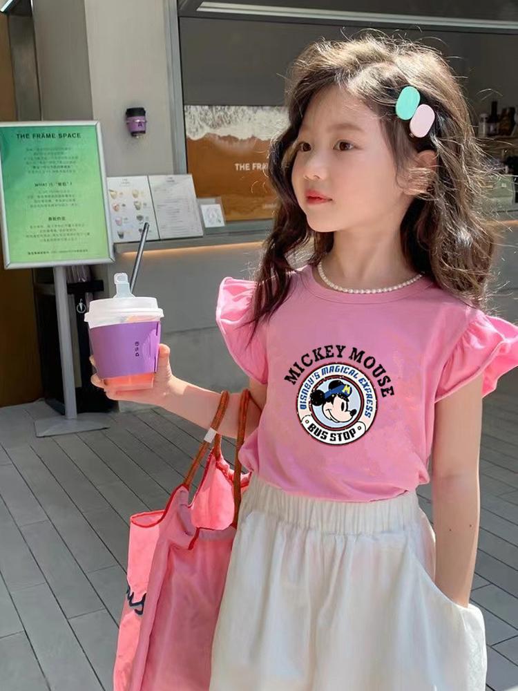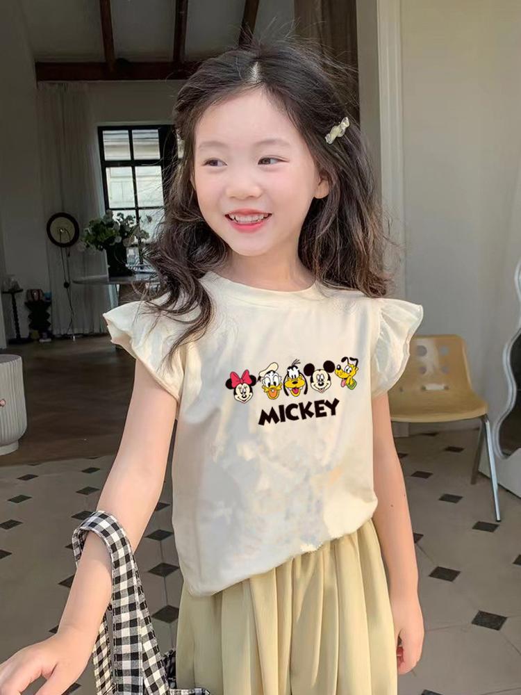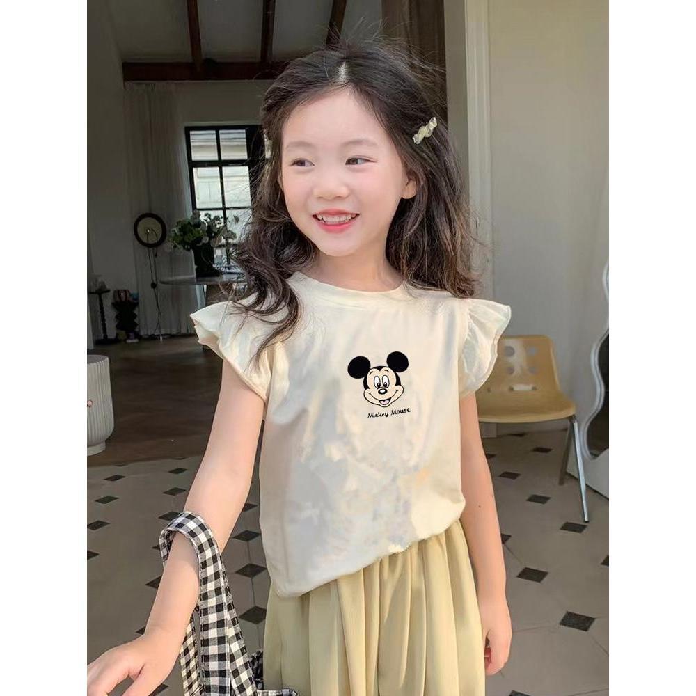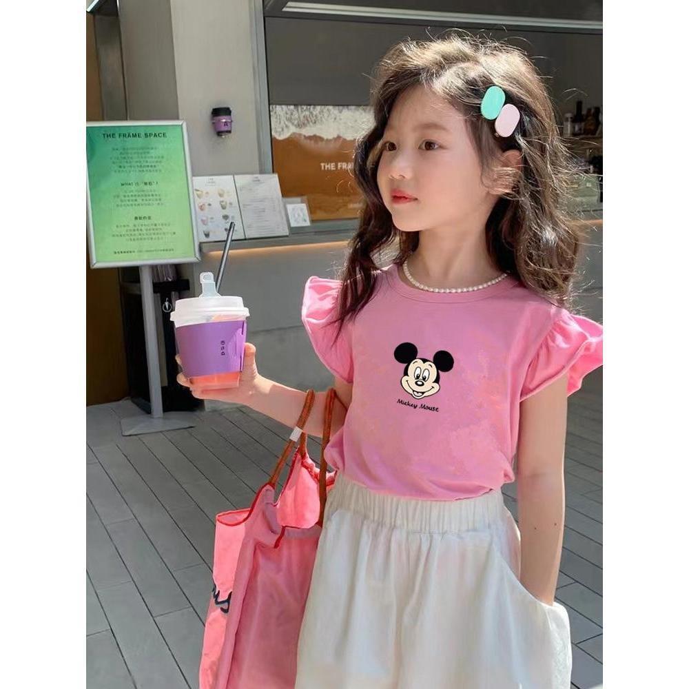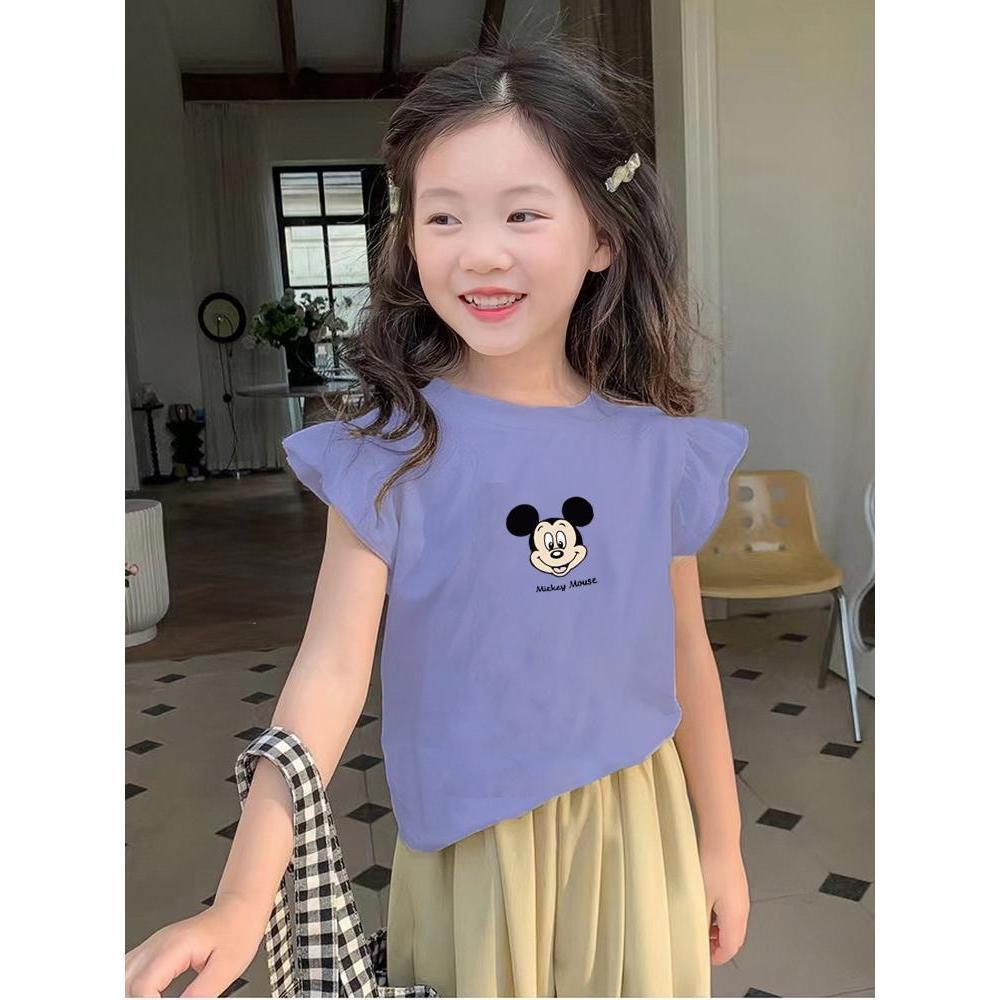 소녀의 만화 미키 플라잉 슬리브 티셔츠 여름 어린이 서양식 퓨어 코튼 탑 어린이 아기의 얇은 티셔츠스토어 가기