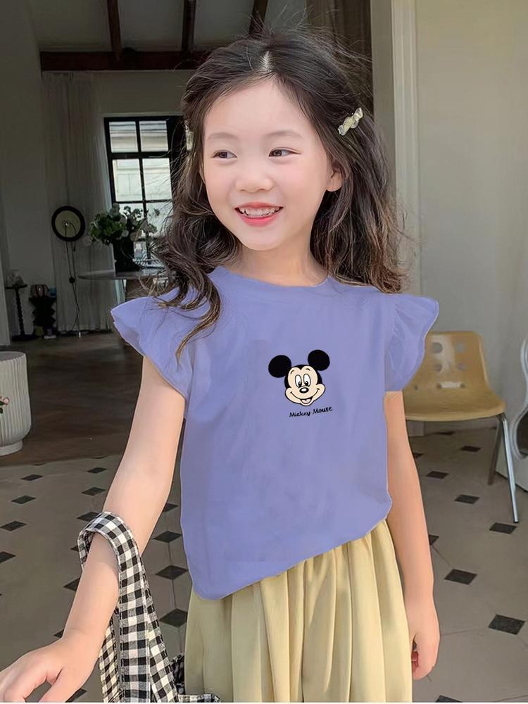 소녀의 만화 미키 플라잉 슬리브 티셔츠 여름 어린이 서양식 퓨어 코튼 탑 어린이 아기의 얇은 티셔츠