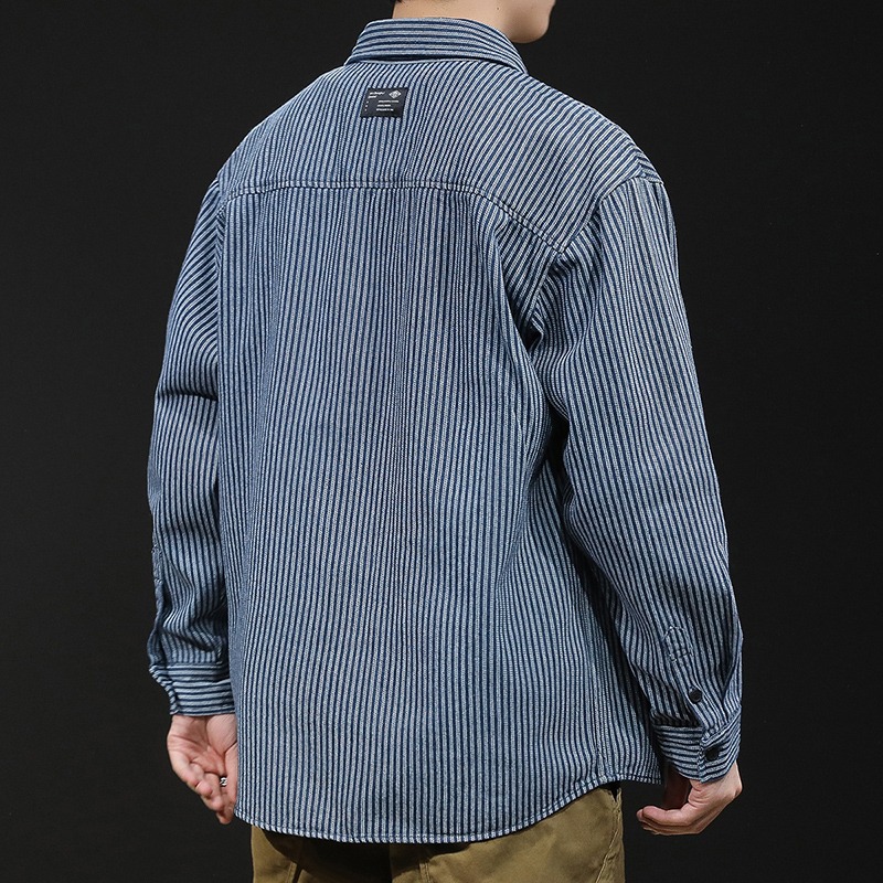 남자 2025 뉴 스트라이프 셔츠 재킷 남자 롱 슬리브 캐주얼 탑 올 매치 데님 셔츠 남자 봄과 가을