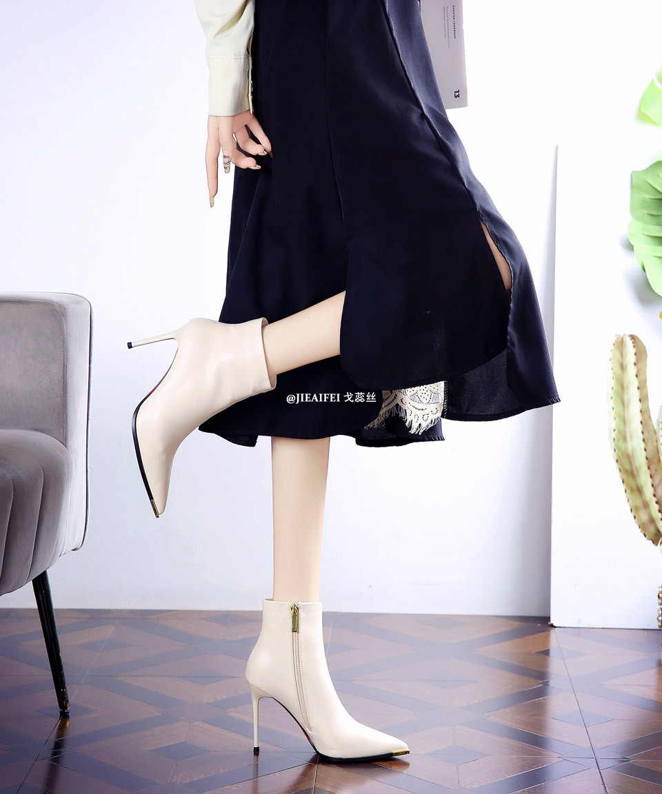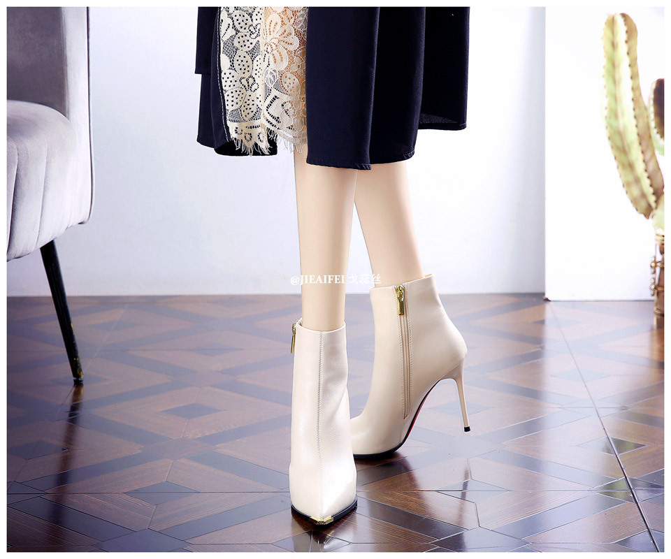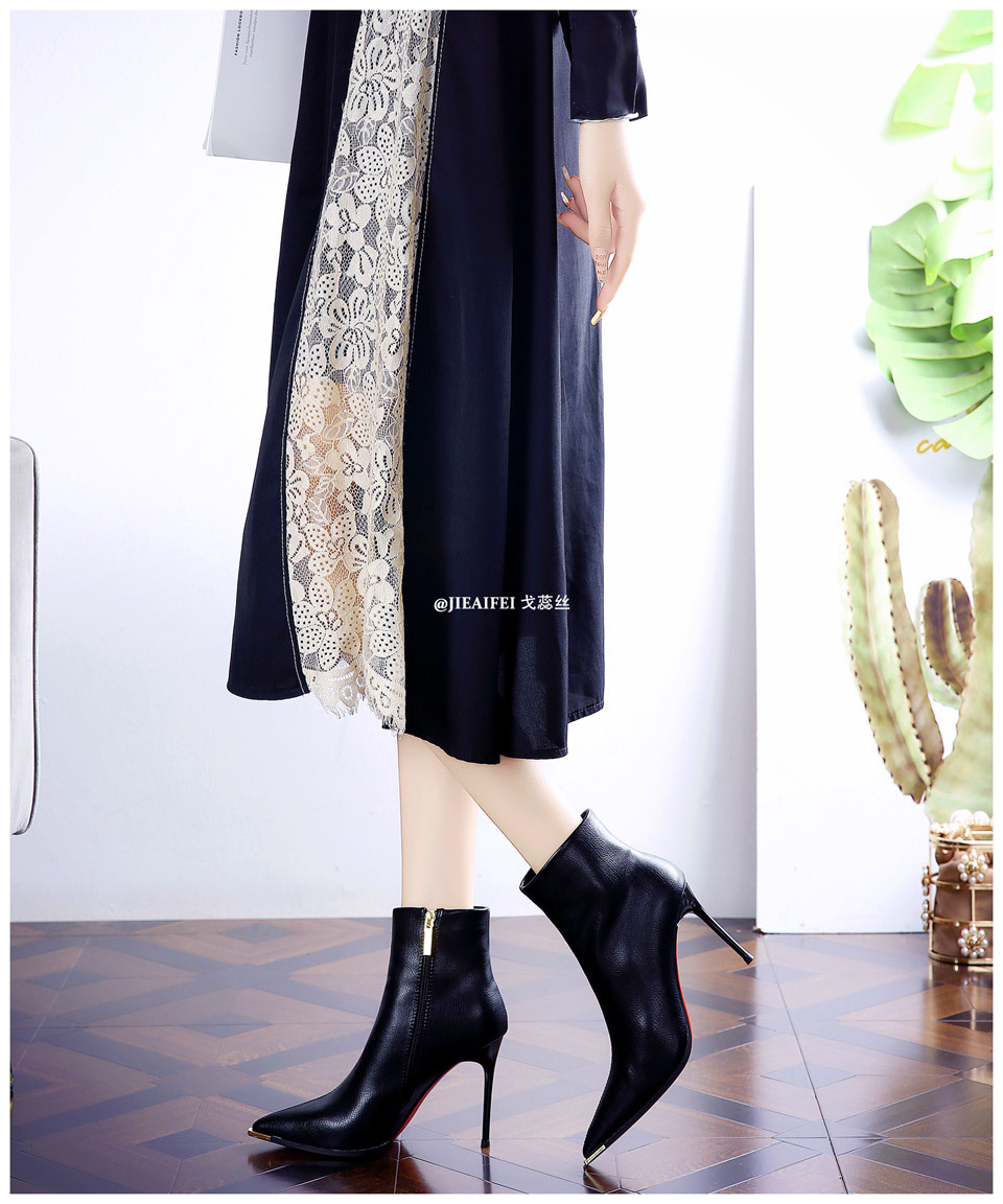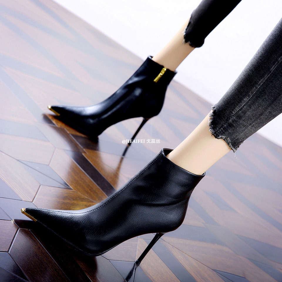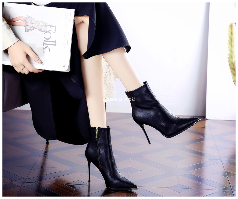 뾰족한 얇은 뒤꿈치 부츠 여성의 가을/겨울 2025 하이힐 부츠 따뜻한 전문 우아한 부드러운 가죽 마틴 부츠 975-10D