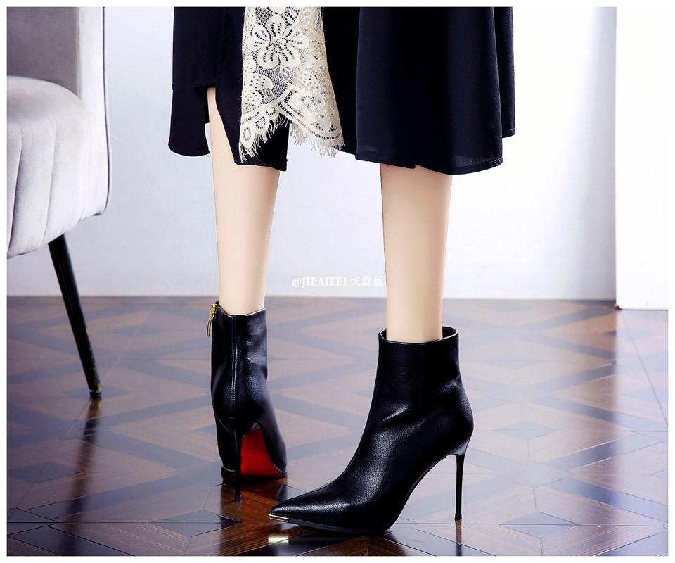 뾰족한 얇은 뒤꿈치 부츠 여성의 가을/겨울 2025 하이힐 부츠 따뜻한 전문 우아한 부드러운 가죽 마틴 부츠 975-10D스토어 가기