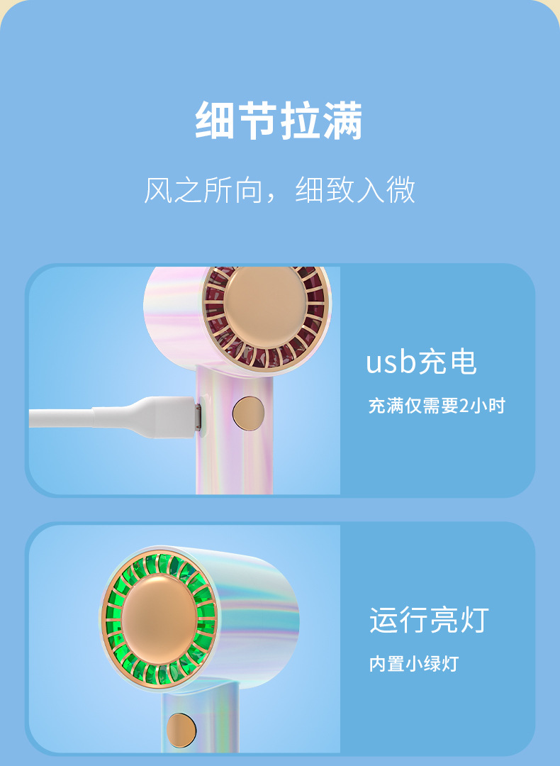 매직 컬러 레이저 미니 라이트 럭셔리 터보 작은 팬 학생 기숙사 조용한 휴대용 USB 충전 작은 팬 공장스토어 가기