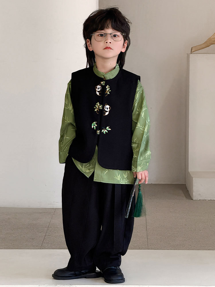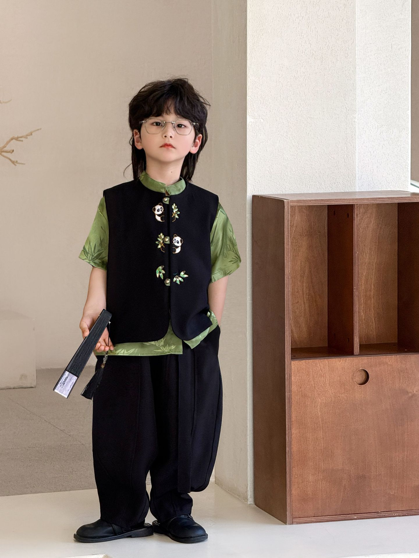 • 25112 팬더 조끼 + 123 검은색 바지 + 189 반팔 녹색 셔츠