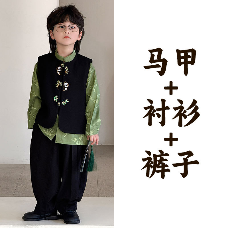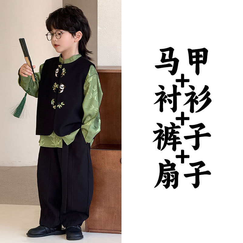 소년 양복 조끼 2025 봄 새로운 중국 스타일 세트 어린이 민소매 조끼 공연 의류 헤어 세대스토어 가기