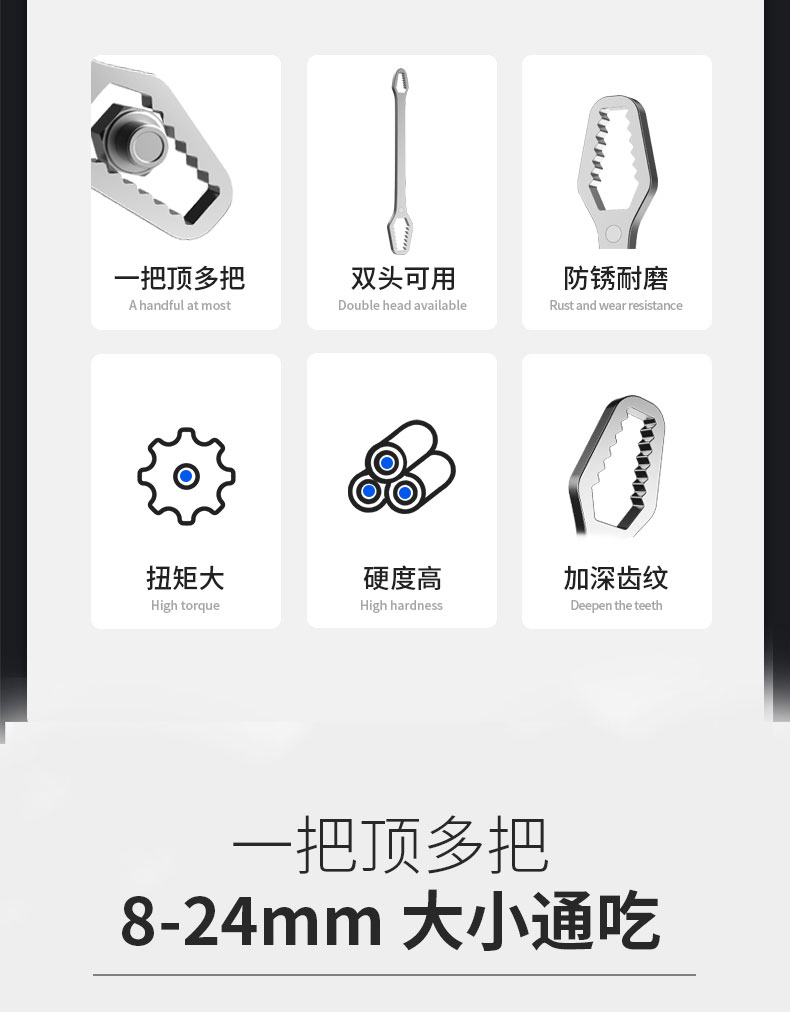 • [강력한 자기 모델] 범용 양두 별 렌치(8-24mm) Haoyue Silver