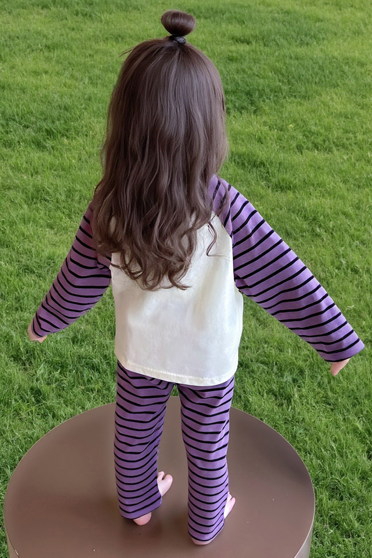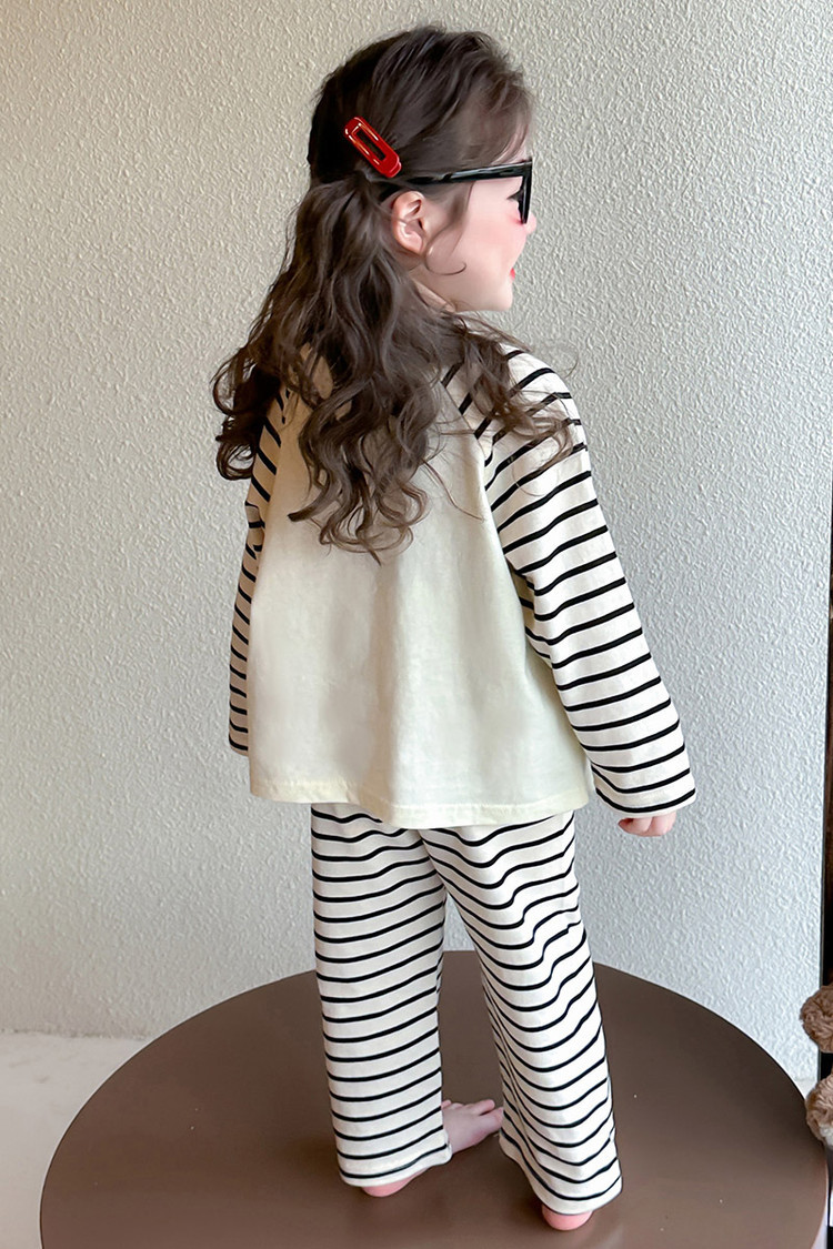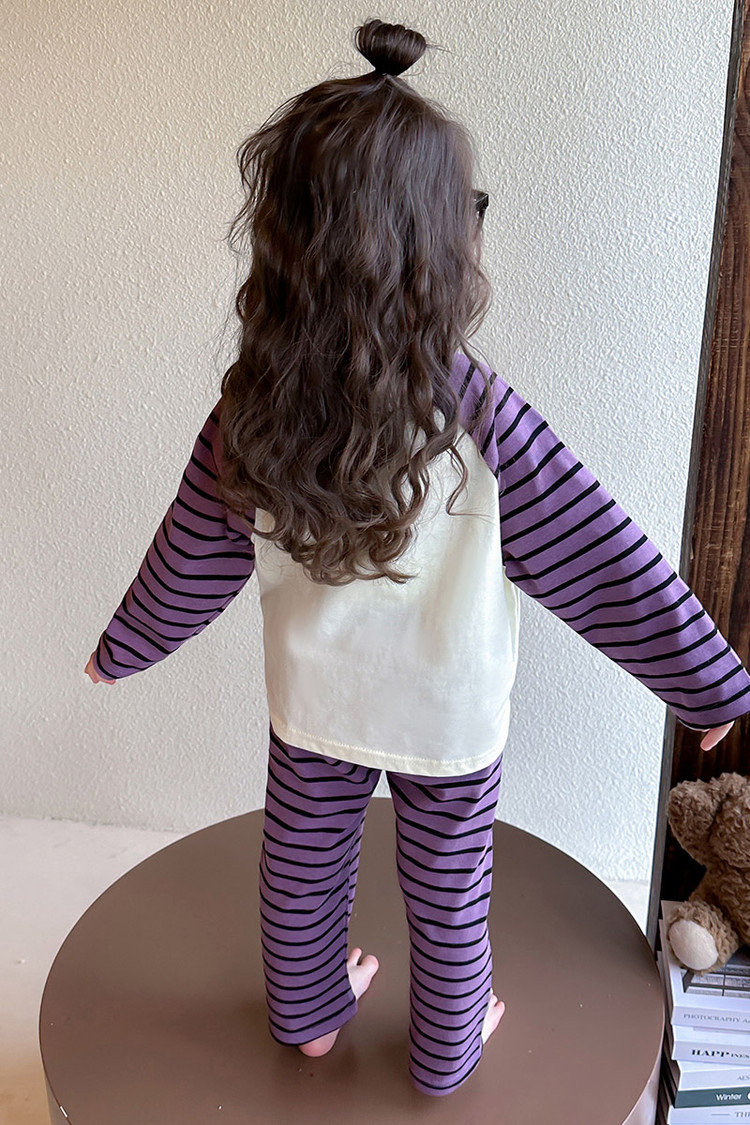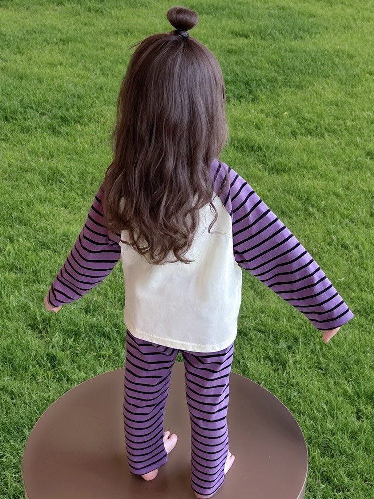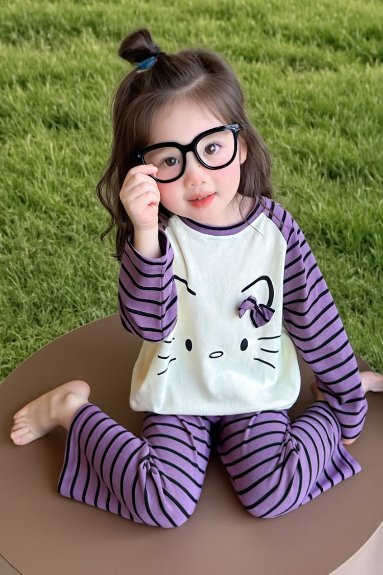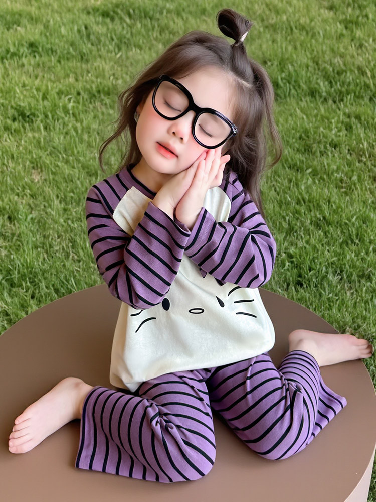 2025 여아 봄 가을 신상 잠옷 여자 아기 고양이 홈웨어 투피스 세트 어린이 스트라이프 세트