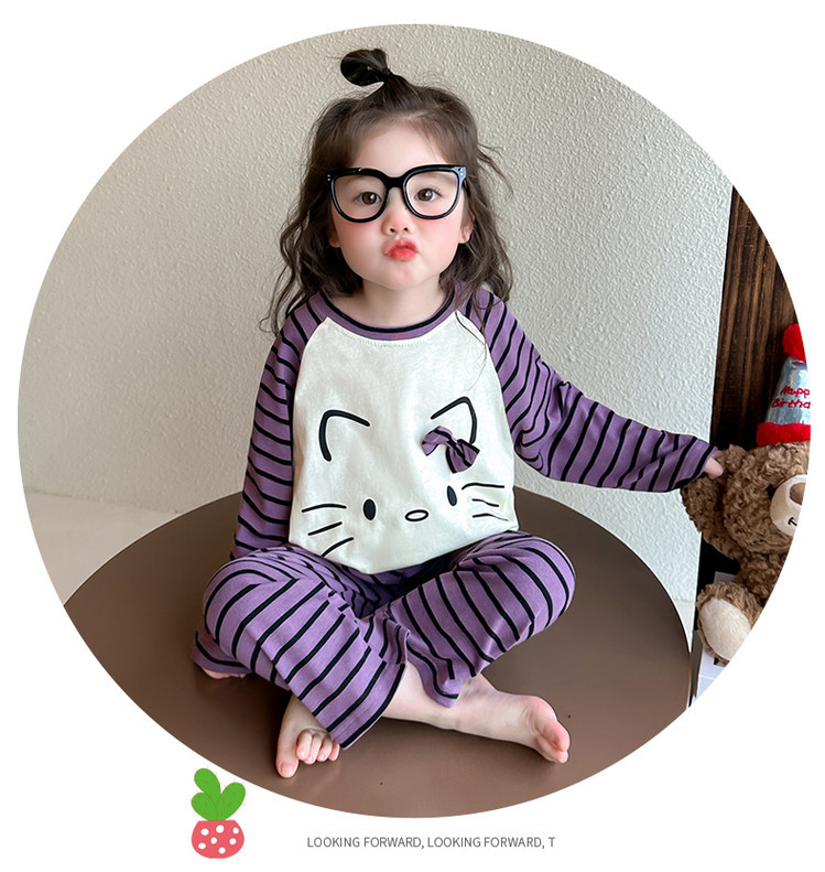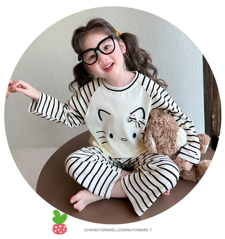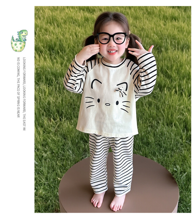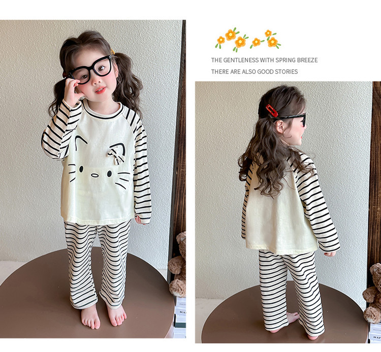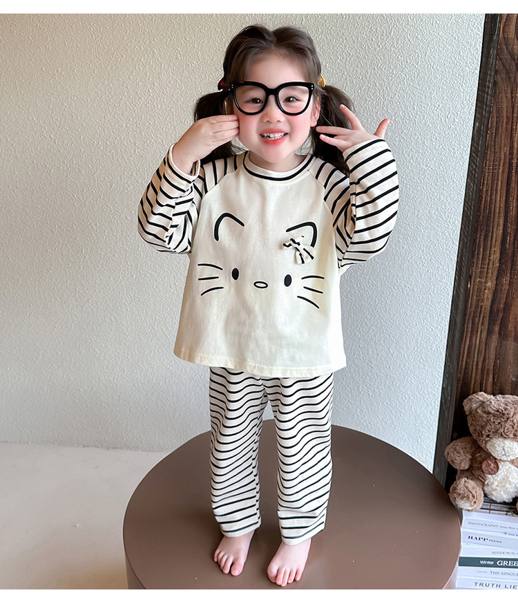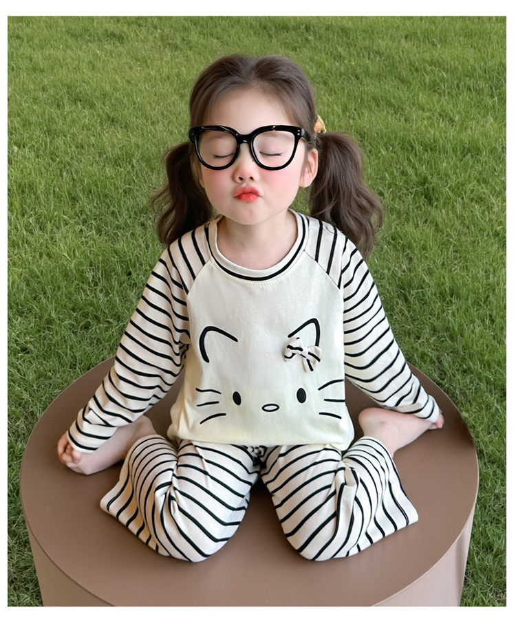2025 여아 봄 가을 신상 잠옷 여자 아기 고양이 홈웨어 투피스 세트 어린이 스트라이프 세트스토어 가기