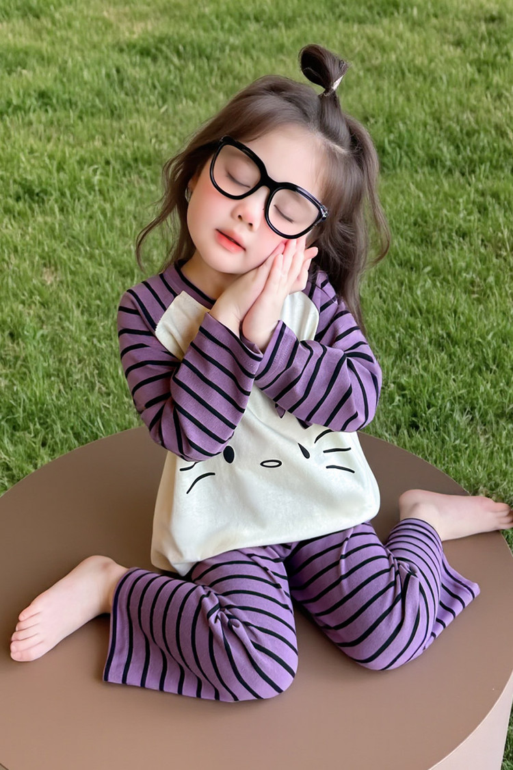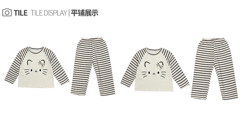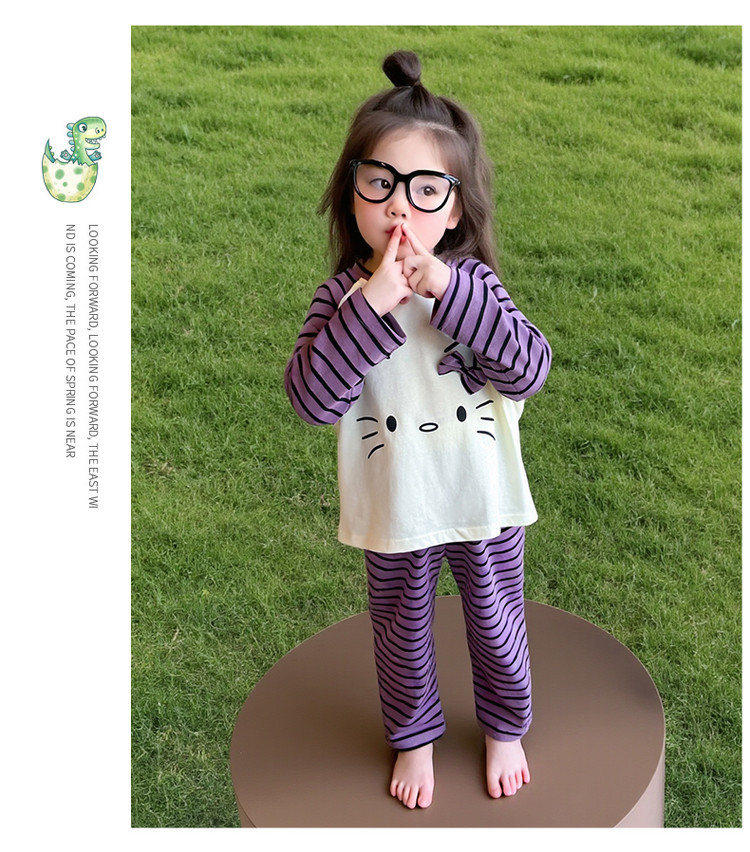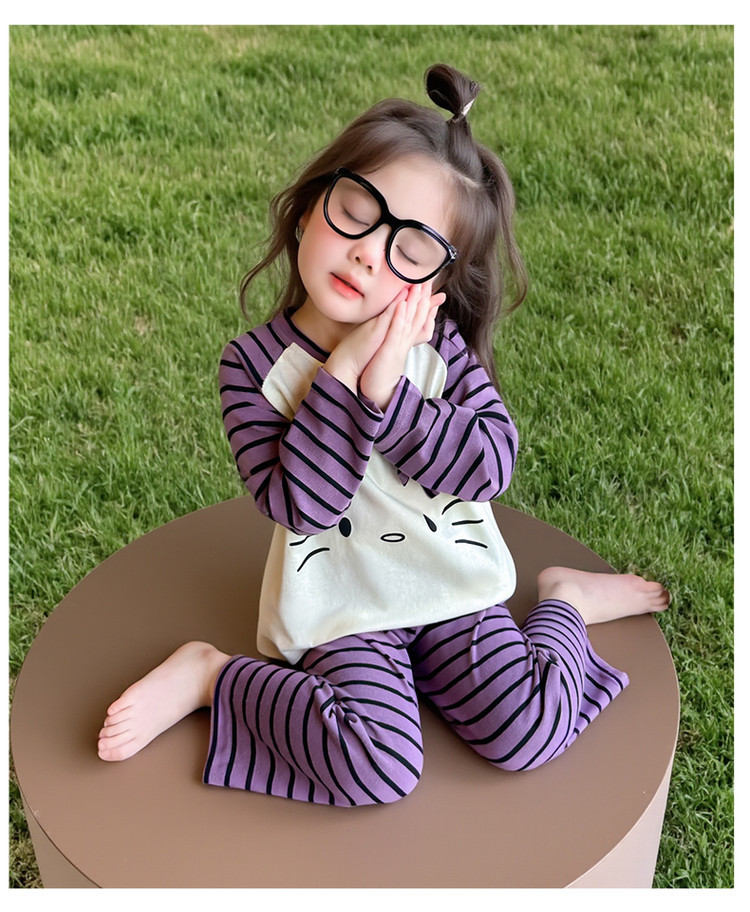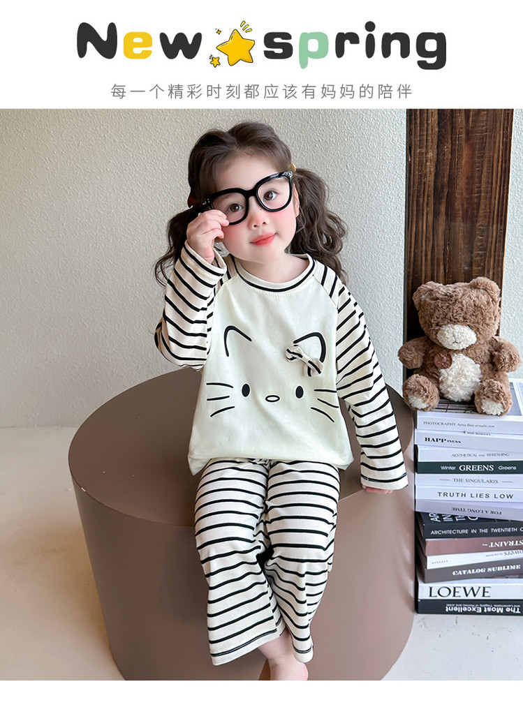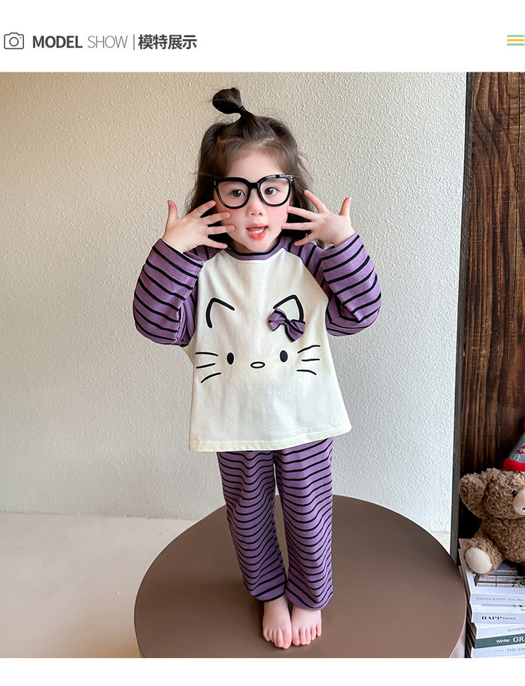 2025 여아 봄 가을 신상 잠옷 여자 아기 고양이 홈웨어 투피스 세트 어린이 스트라이프 세트스토어 가기