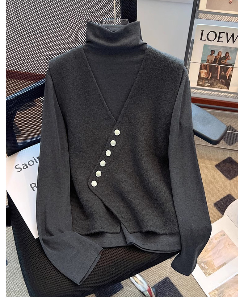 공식 웹 사이트 그림 V-Neck Oblique 버클 조끼 여성의 봄과 가을 플러스 사이즈 하이 엔드 서양식 루즈 슬림 핏 말벌