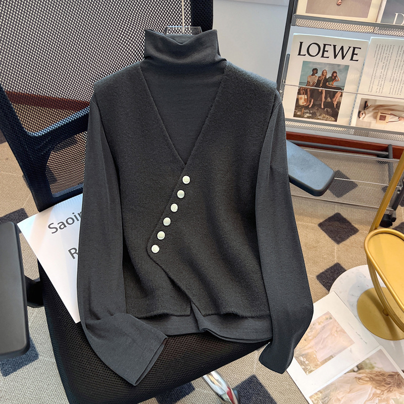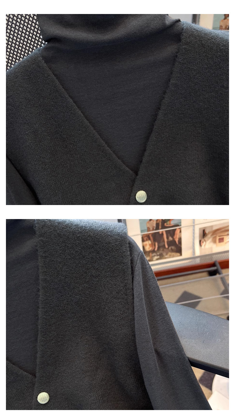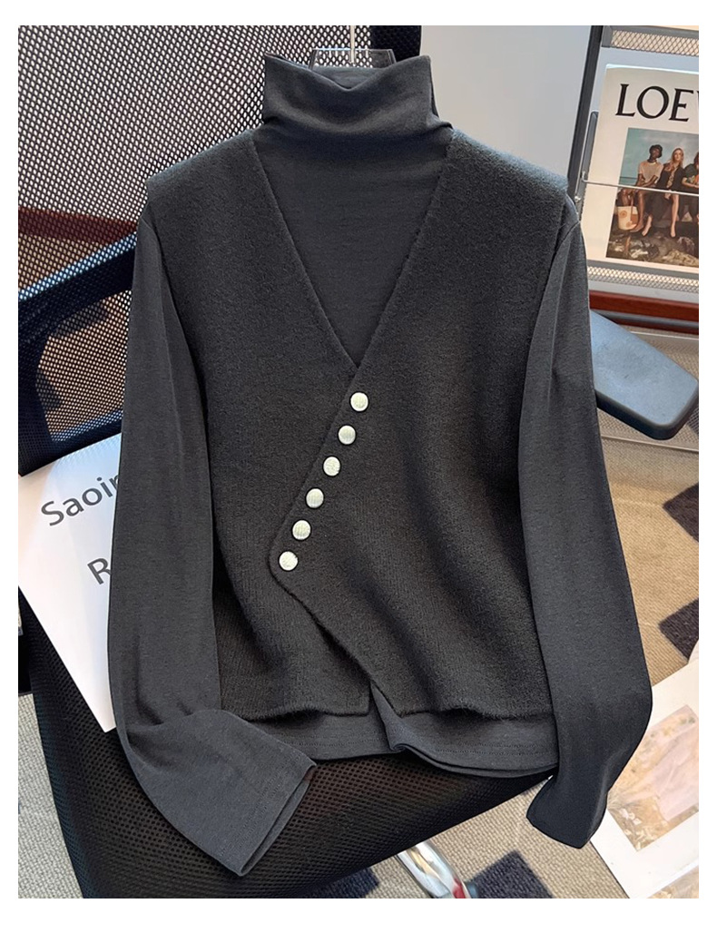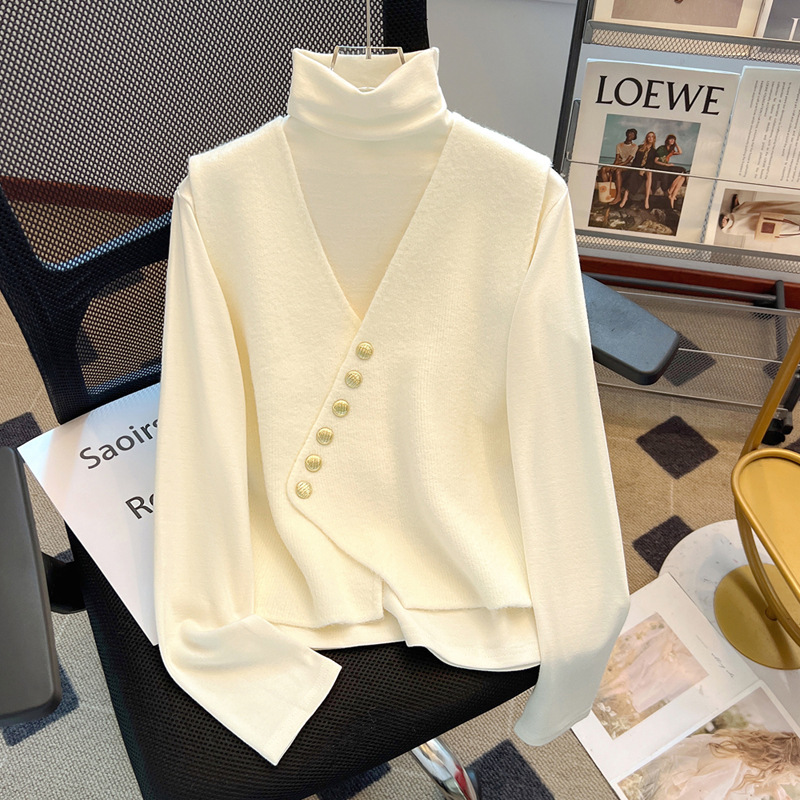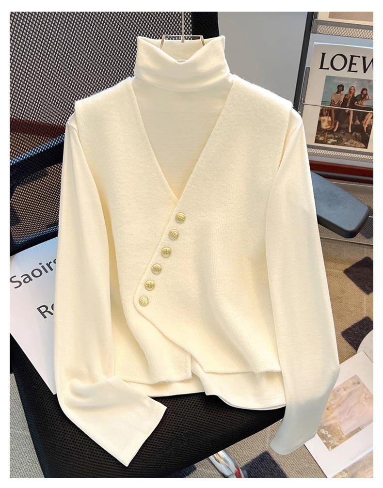 공식 웹 사이트 그림 V-Neck Oblique 버클 조끼 여성의 봄과 가을 플러스 사이즈 하이 엔드 서양식 루즈 슬림 핏 말벌스토어 가기