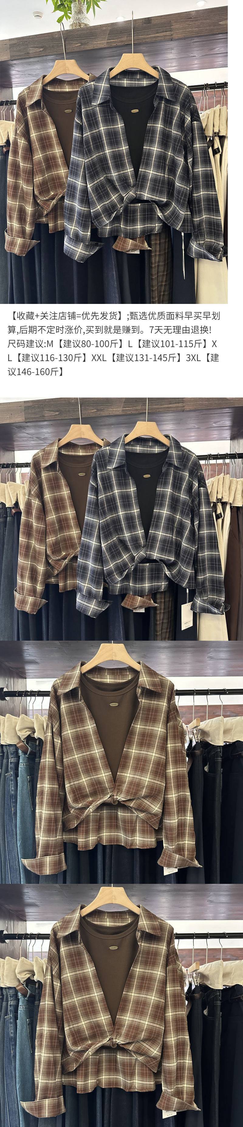 POLO领不规则格子衬衫圆领背心两件套上衣秋装2024秋季新款显瘦女