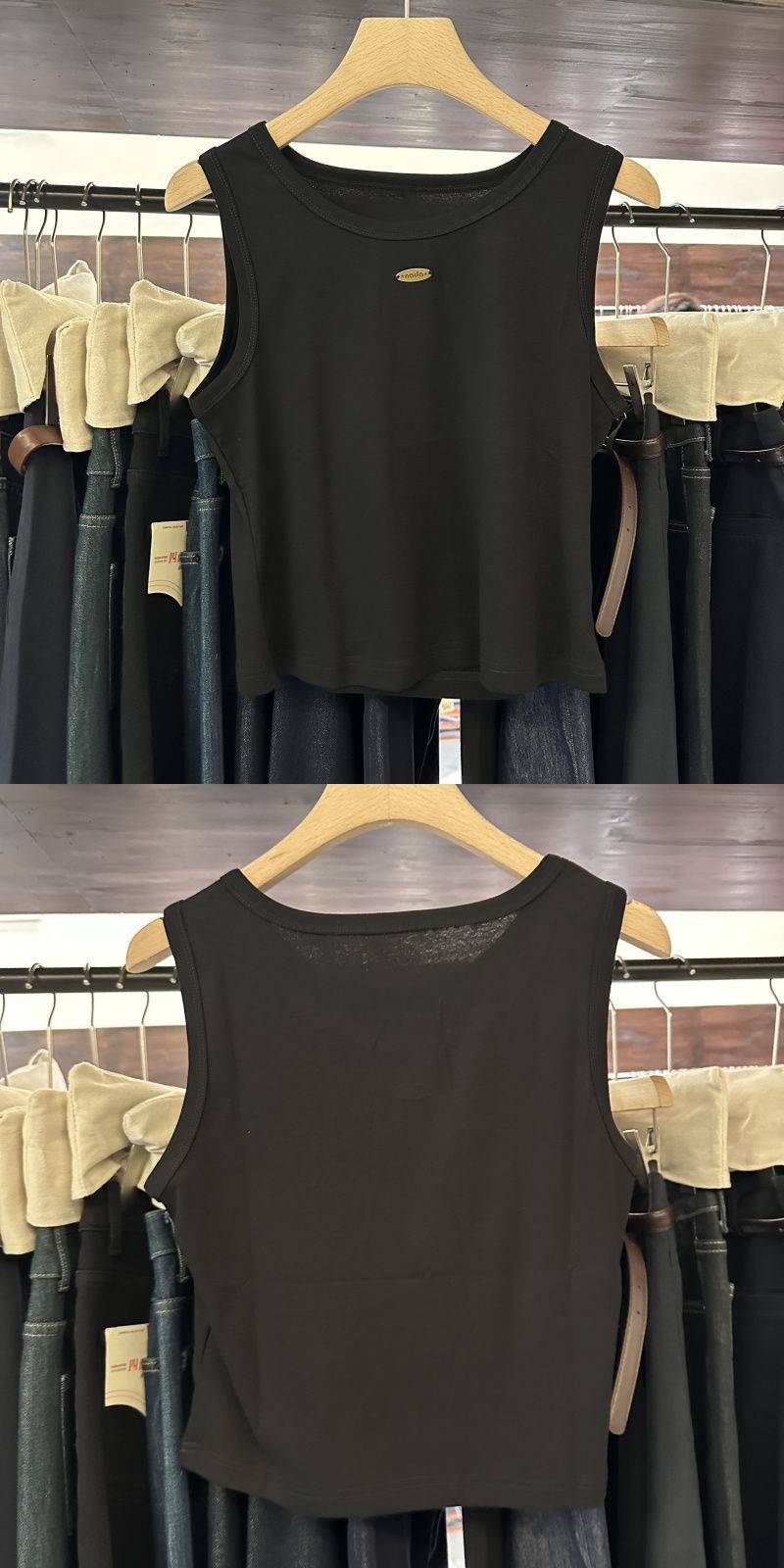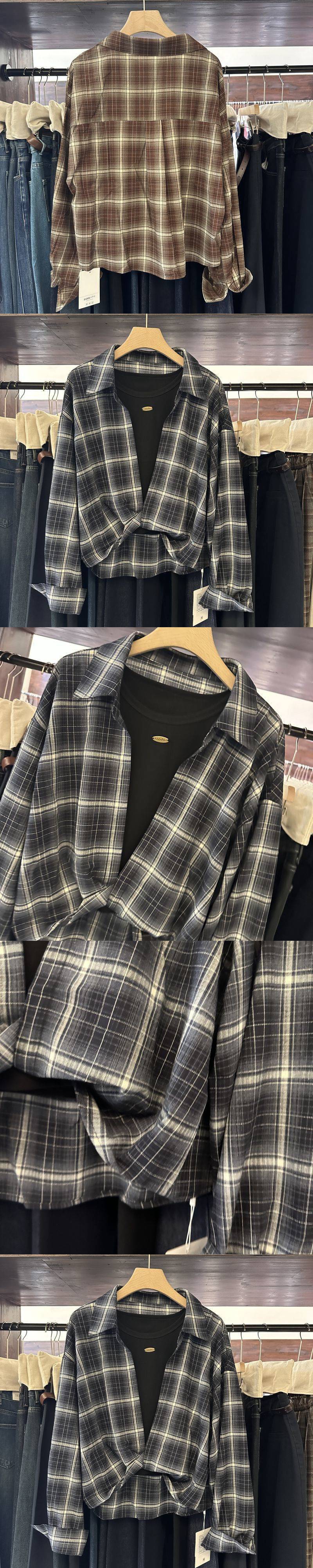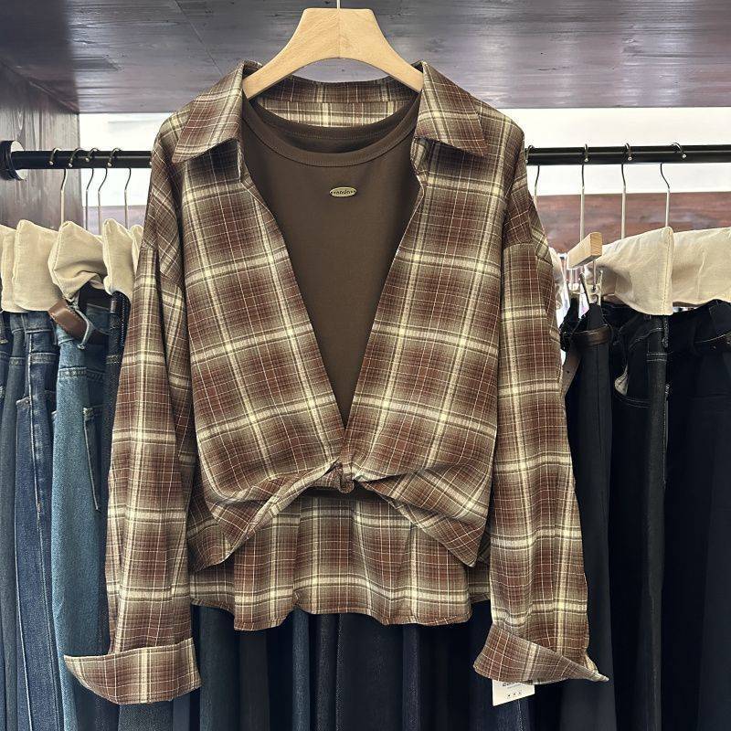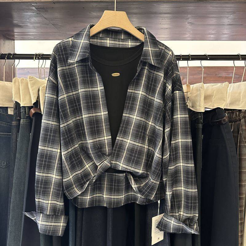 목 불규칙한 격자 무늬 셔츠 크루 넥 조끼 투피스 탑 봄 2025 봄 새로운 슬림 여성스토어 가기