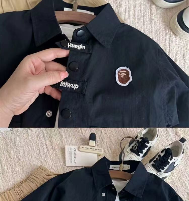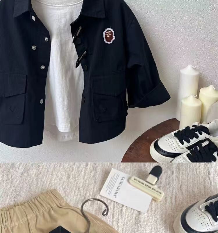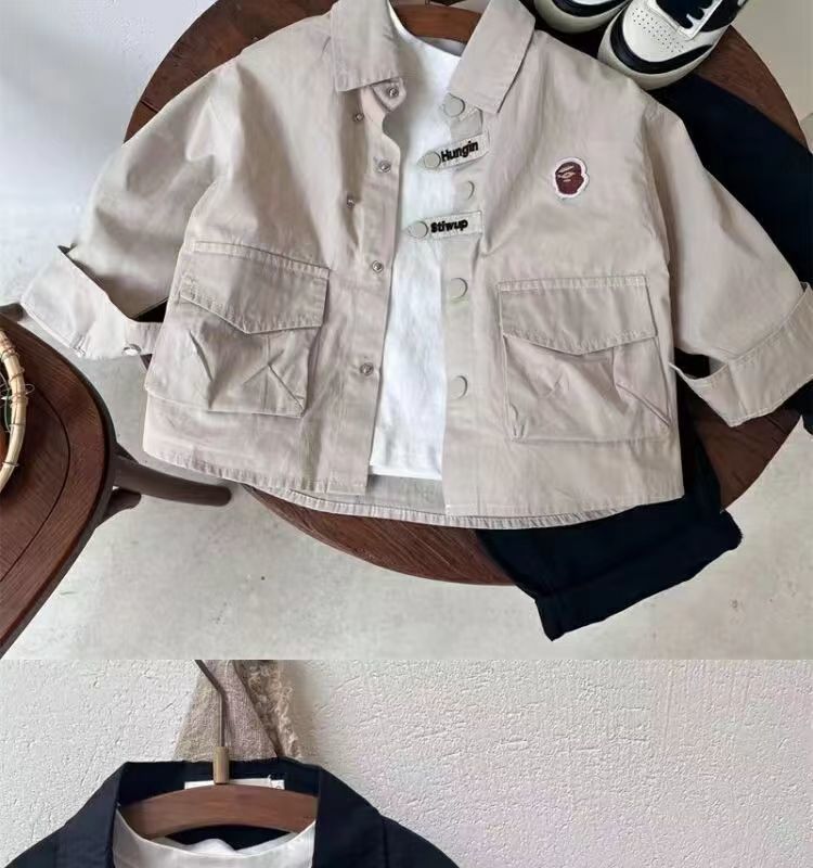 [2213 컬렉션] 소년 셔츠 코트 2024 봄 · 가을 새 어린이 큰포켓 재킷 셔츠 아기