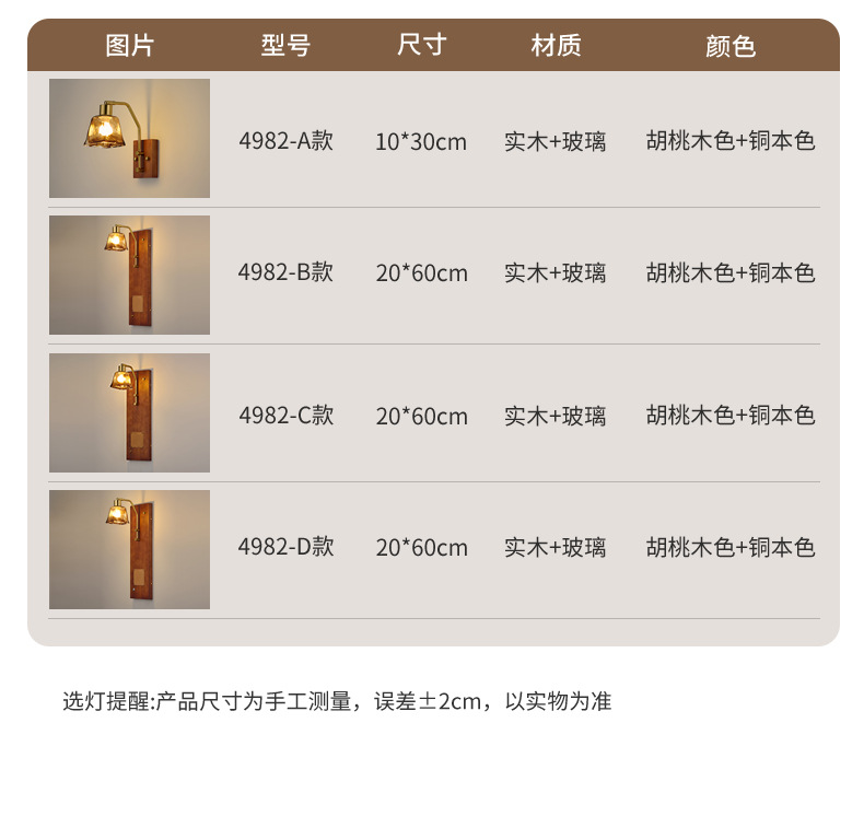 • 4982-20cmB 모델(배선) - 호두색 + 구리색 - Tmall Wuji-5W - 전체 스펙트럼
