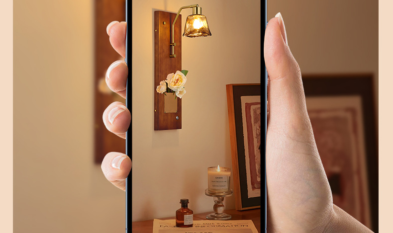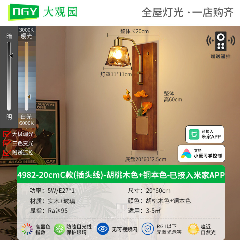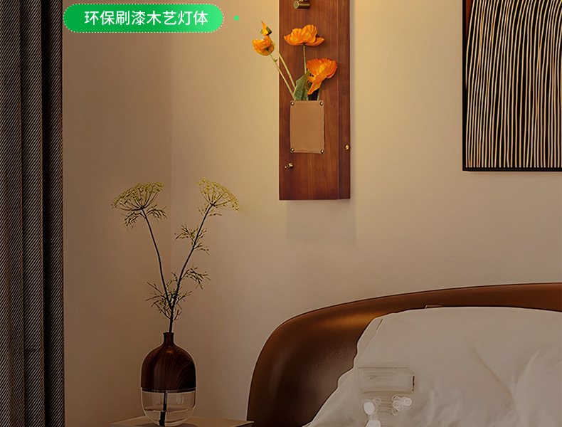 대관원 일본식 레트로 호두나무 색상 침대 옆 미니멀리스트 벽등 민슈쿠 계단 발코니 디자이너 조명 L535스토어 가기