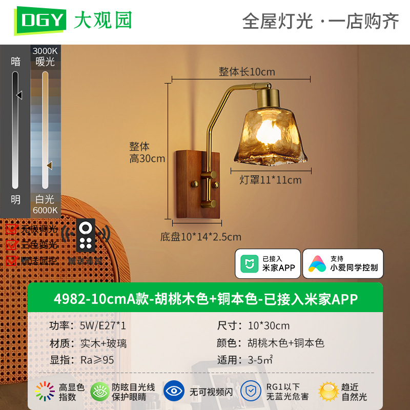 • 4982-10cmA 모델 - 호두색 + 구리색 - Mijia APP-5W에 연결됨 - 전체 스펙트럼