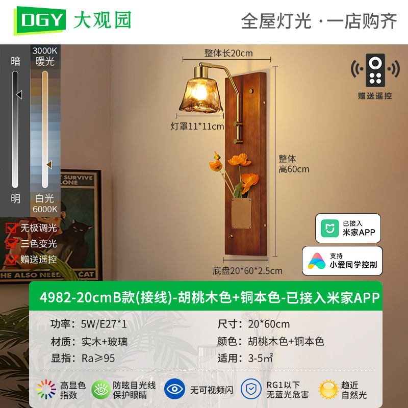 • 4982-20cmB 모델(배선) - 호두색 + 구리색 - Mijia APP-5W에 연결됨 - 전체 스펙트럼