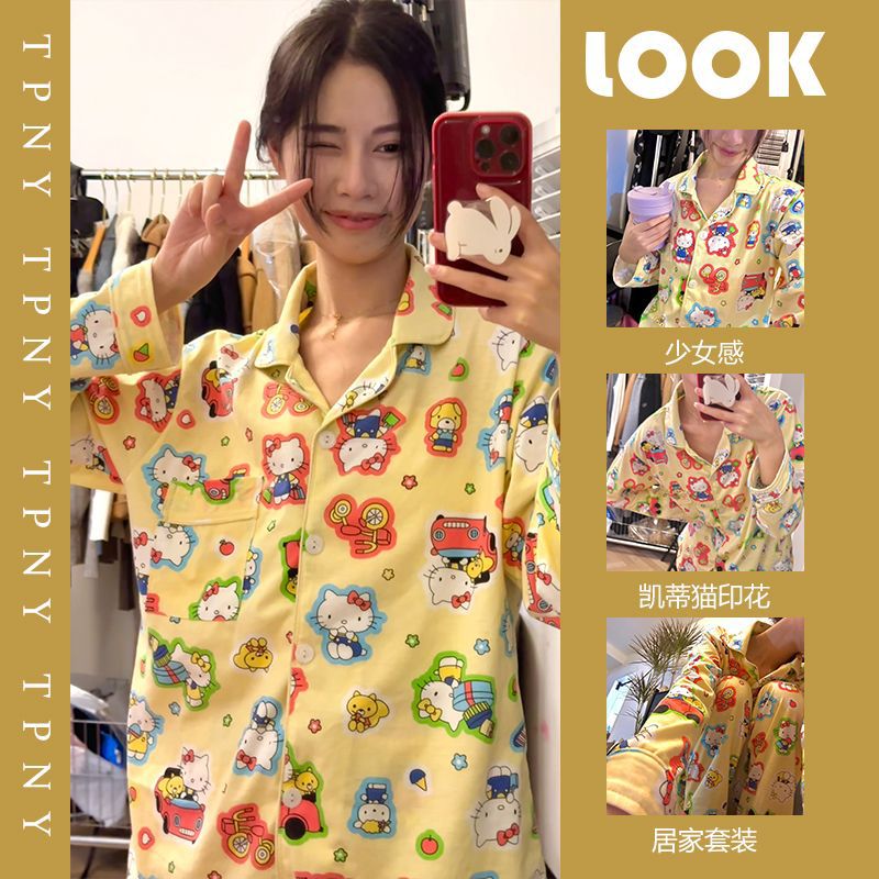 강아지 무늬 여성용 봄 가을 긴팔 긴바지 잠옷, 일본풍 만화 캐릭터, 학생용, 외출복으로도 착용 가능, 캐주얼하고 편안한 소녀 스타일스토어 가기