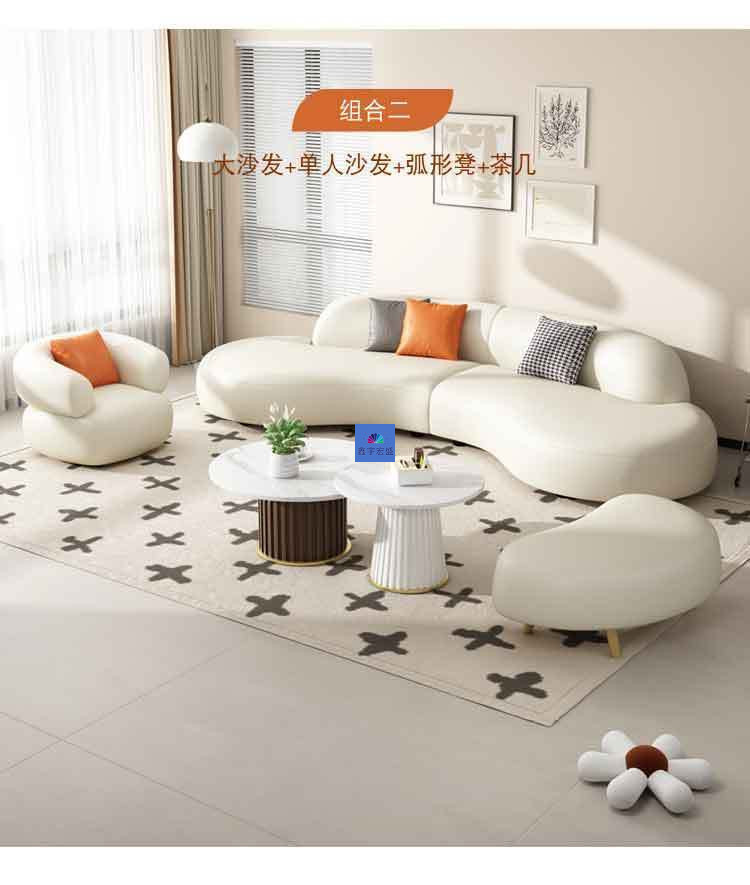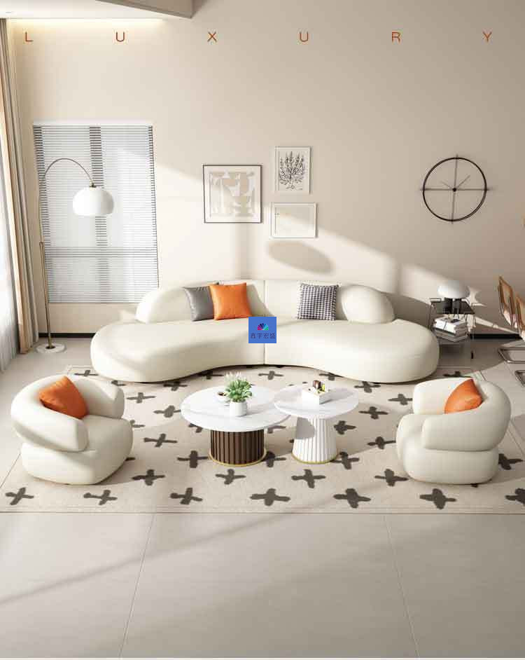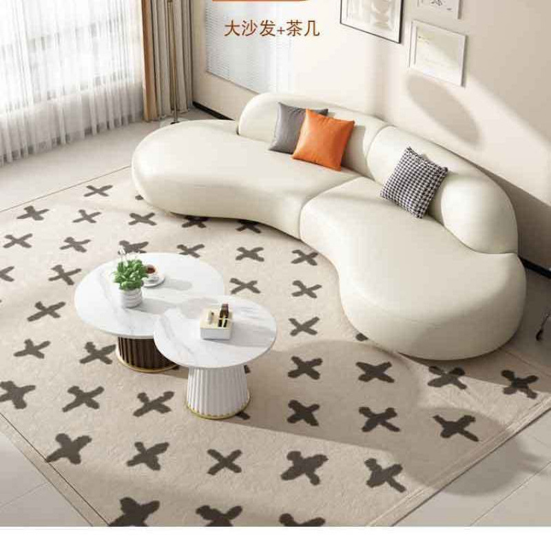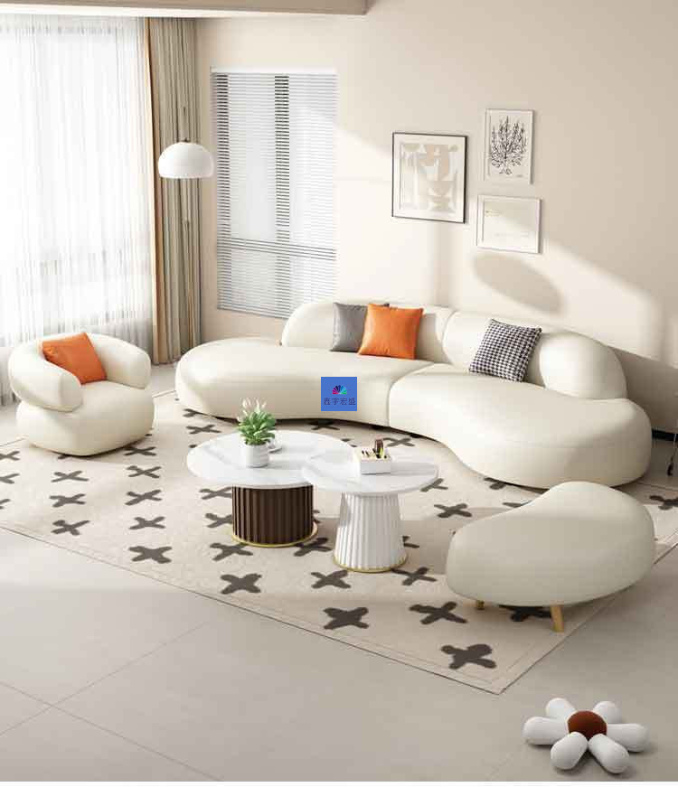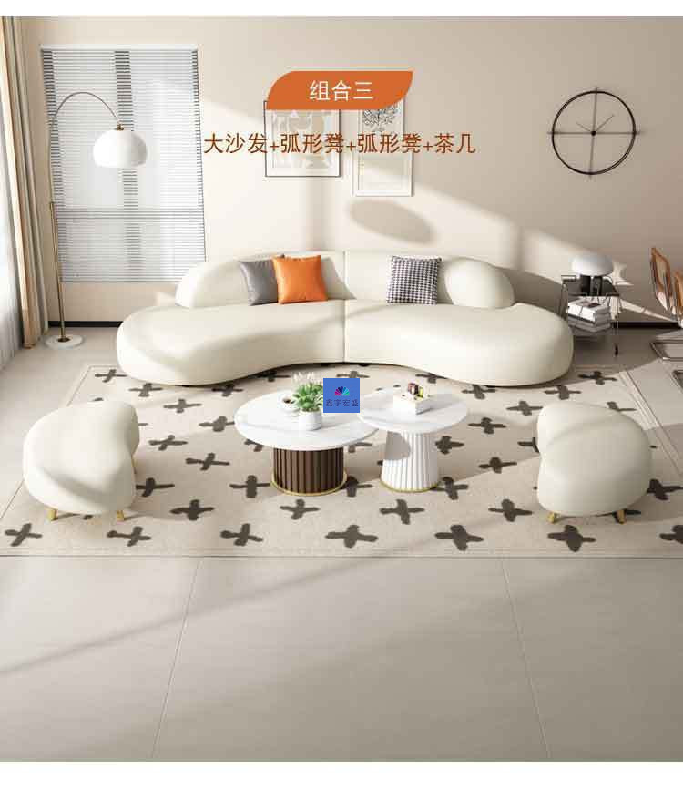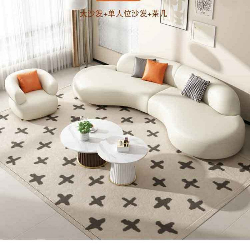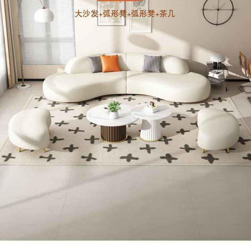 가벼운 럭셔리 작은 아파트 커피 테이블 조합 세트 패션 크림 스타일 기술 천 곡선 소파 거실 간단한 젊은 사람들스토어 가기