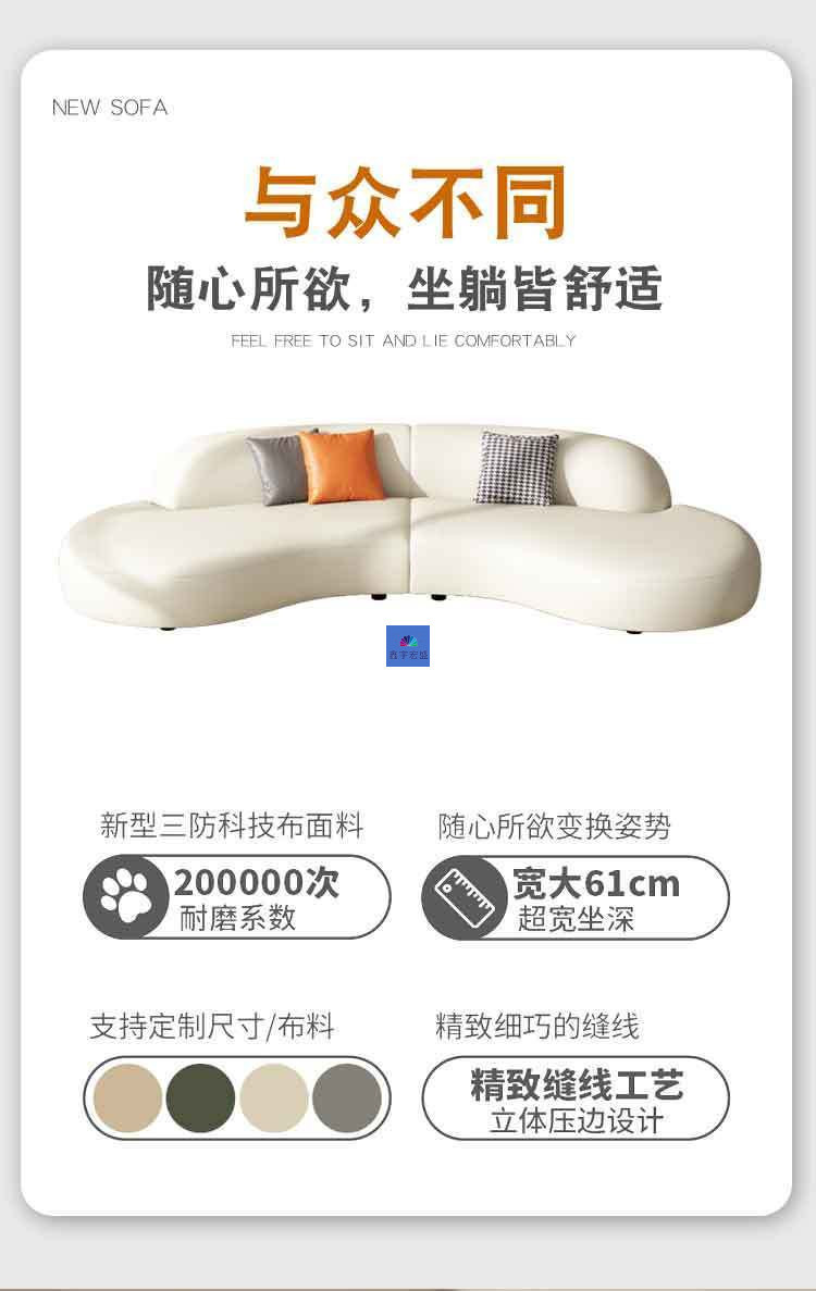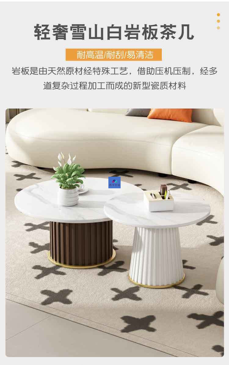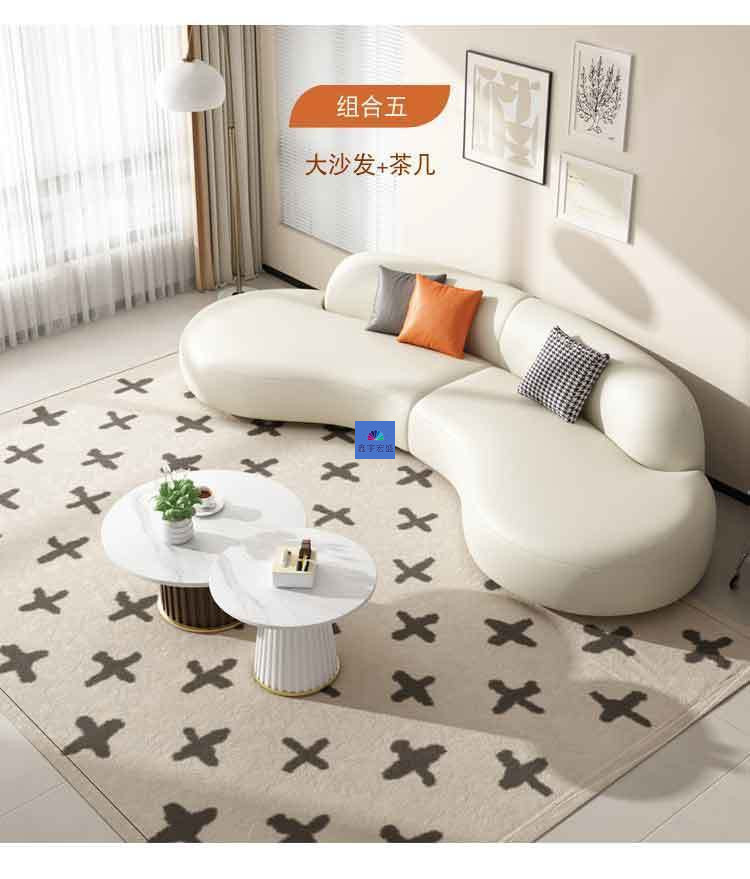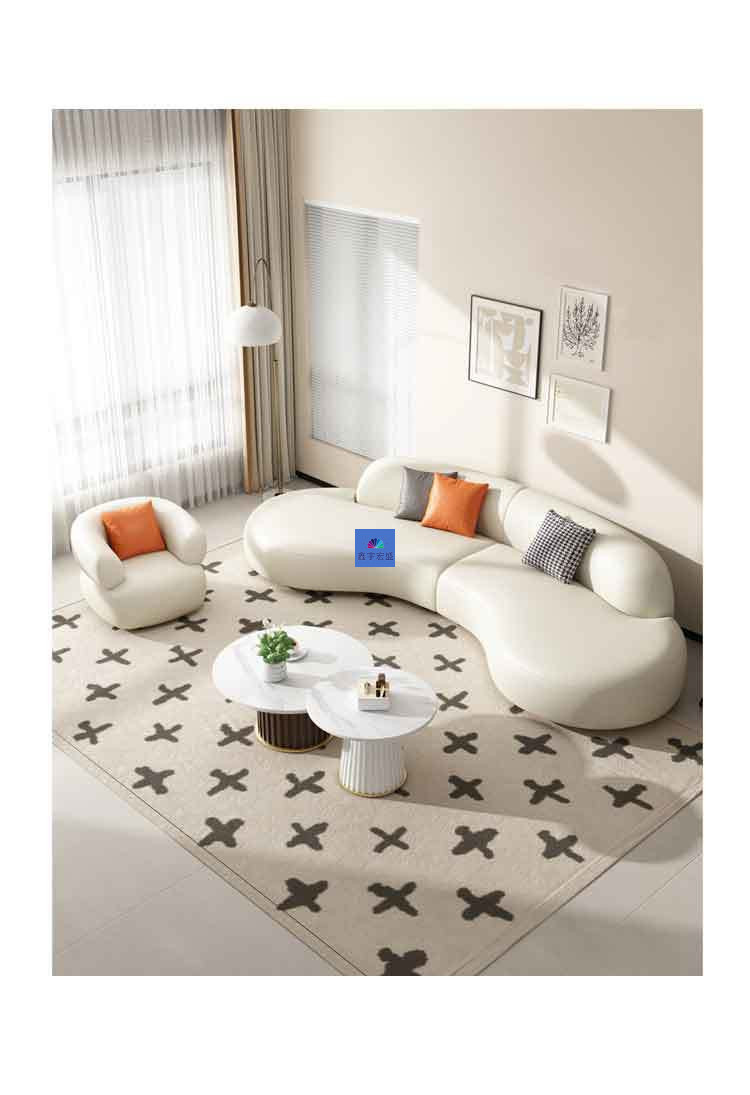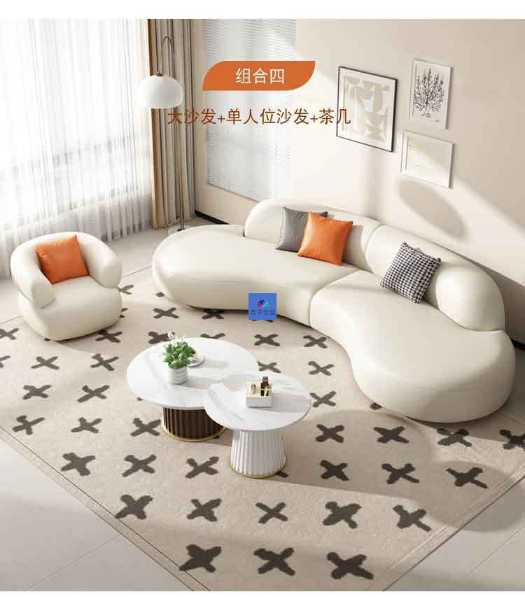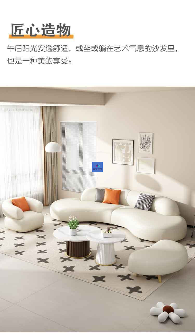 가벼운 럭셔리 작은 아파트 커피 테이블 조합 세트 패션 크림 스타일 기술 천 곡선 소파 거실 간단한 젊은 사람들스토어 가기