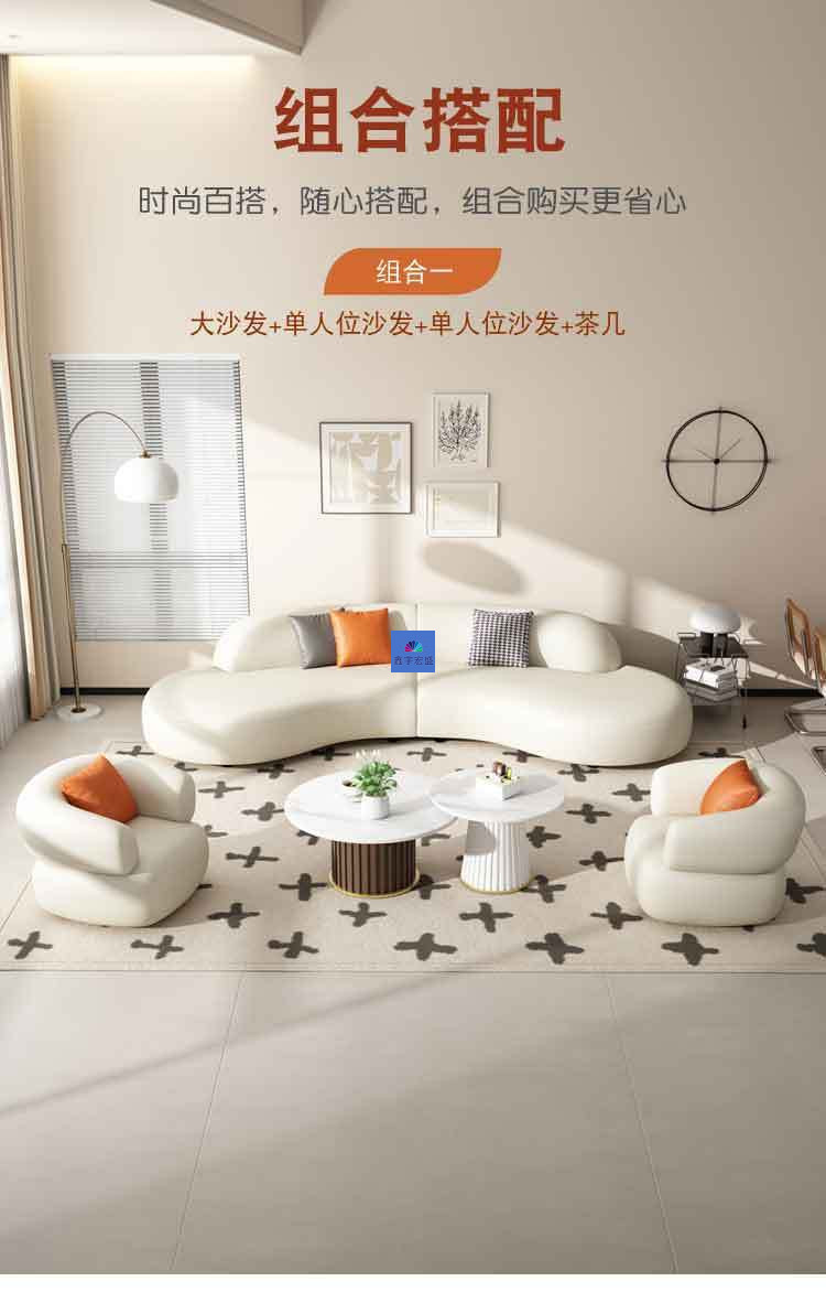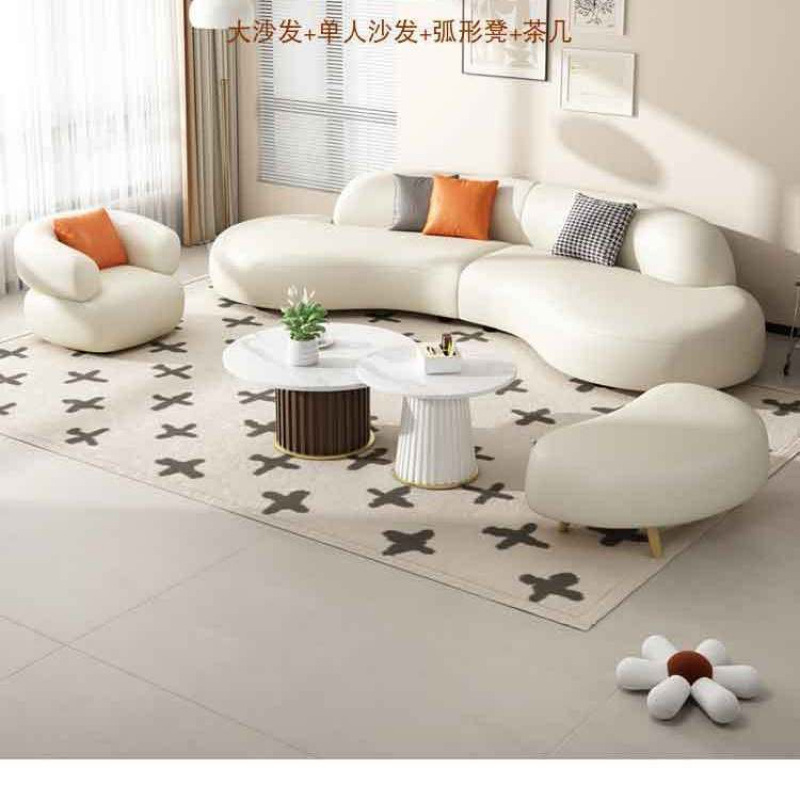 가벼운 럭셔리 작은 아파트 커피 테이블 조합 세트 패션 크림 스타일 기술 천 곡선 소파 거실 간단한 젊은 사람들