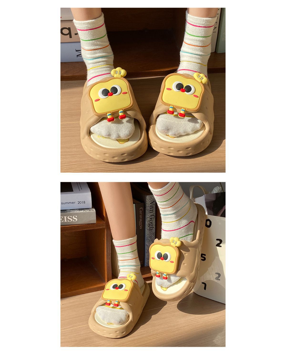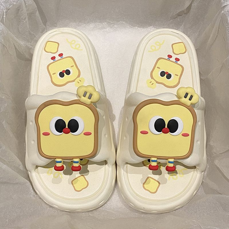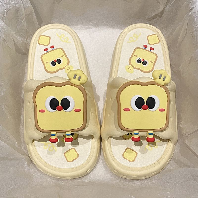 인터넷 축하 작은 빵 재미 에바 슬리퍼 캐주얼 미끄럼 미끄럼 방지 여름 새 학생 기숙사 여성을위한 한 단어 슬리퍼