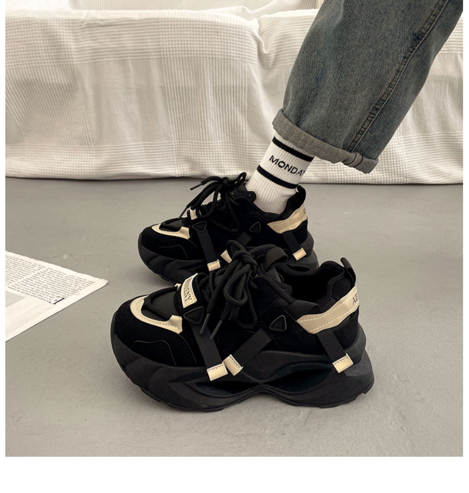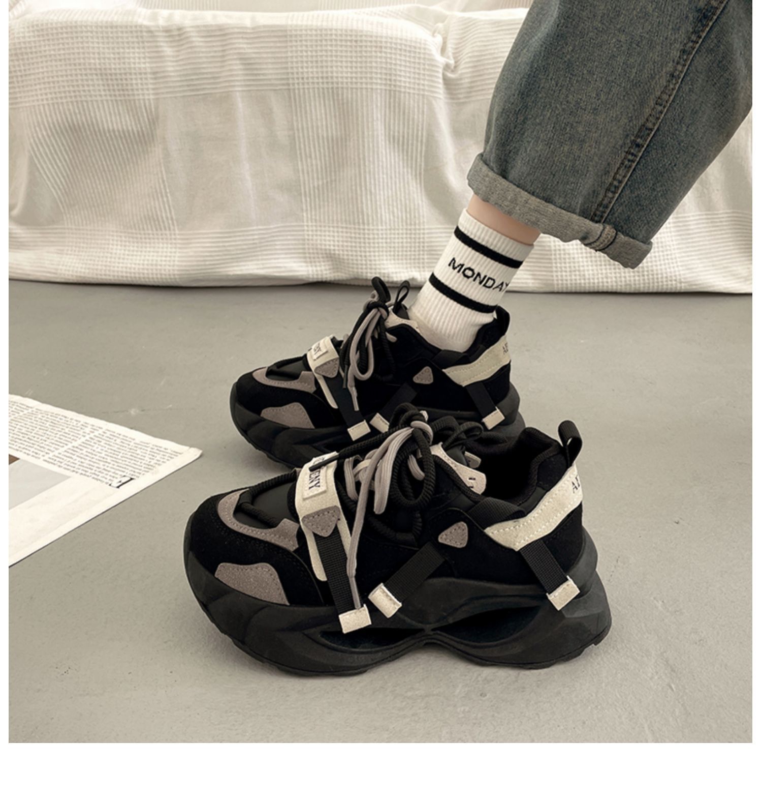 조커 두꺼운 밑창 토르 신발 여성의 봄과 가을 높이 증가 2025 새로운 유럽 블랙 캐주얼 운동화스토어 가기