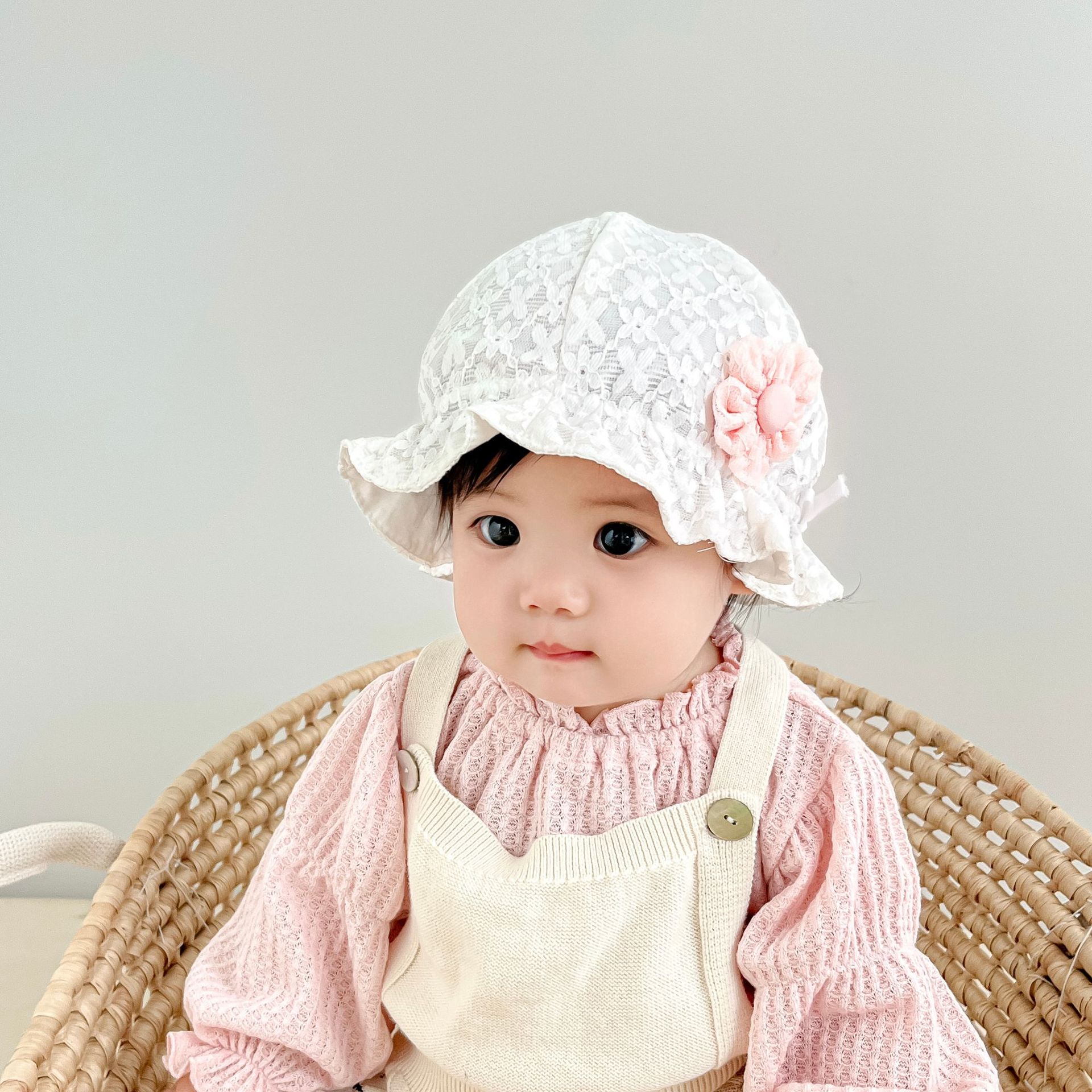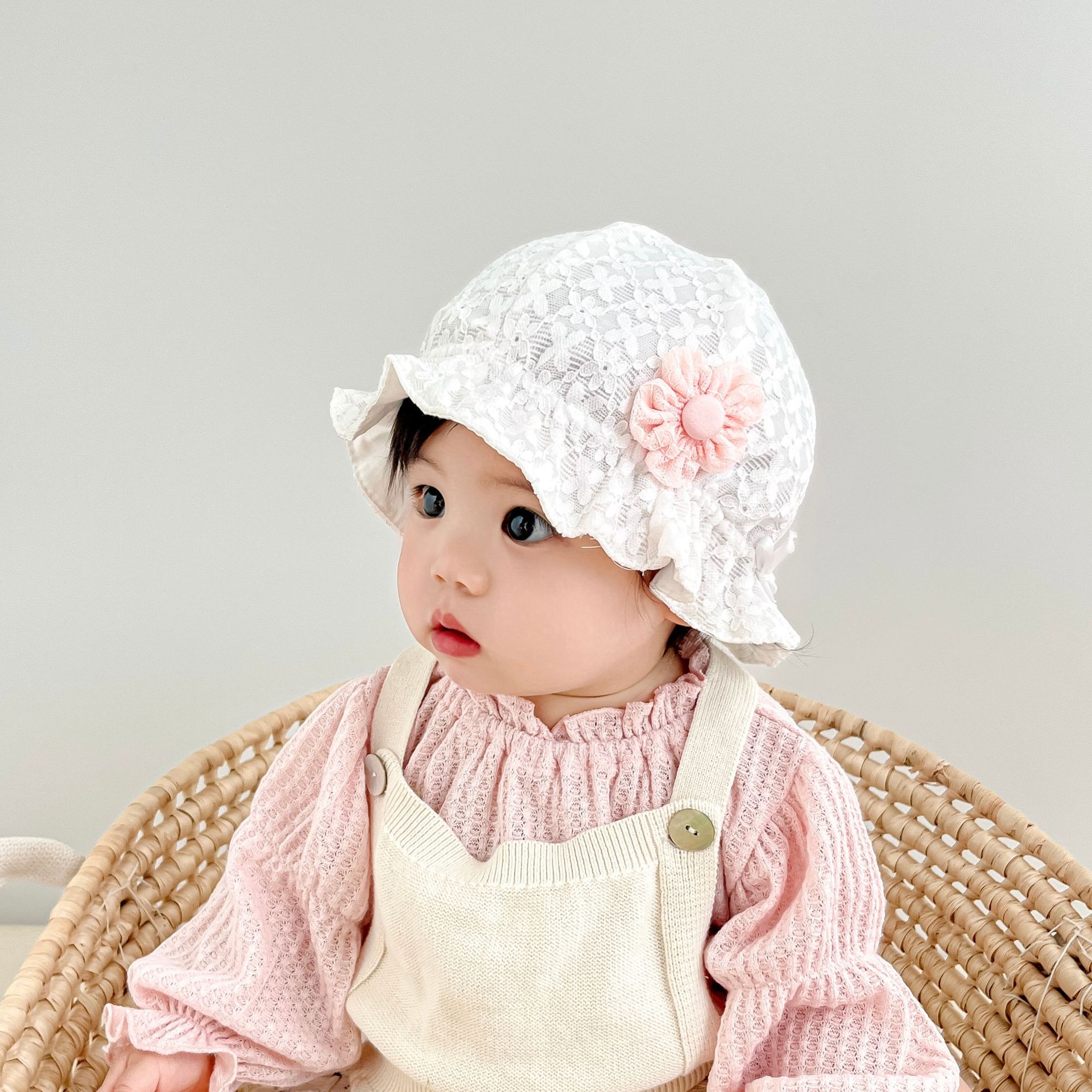 유아 작은 달 햇빛 분지 모자 신생아 아기 소녀 어부 모자 귀여운 슈퍼 귀여운 작은 꽃 끈 어부스토어 가기