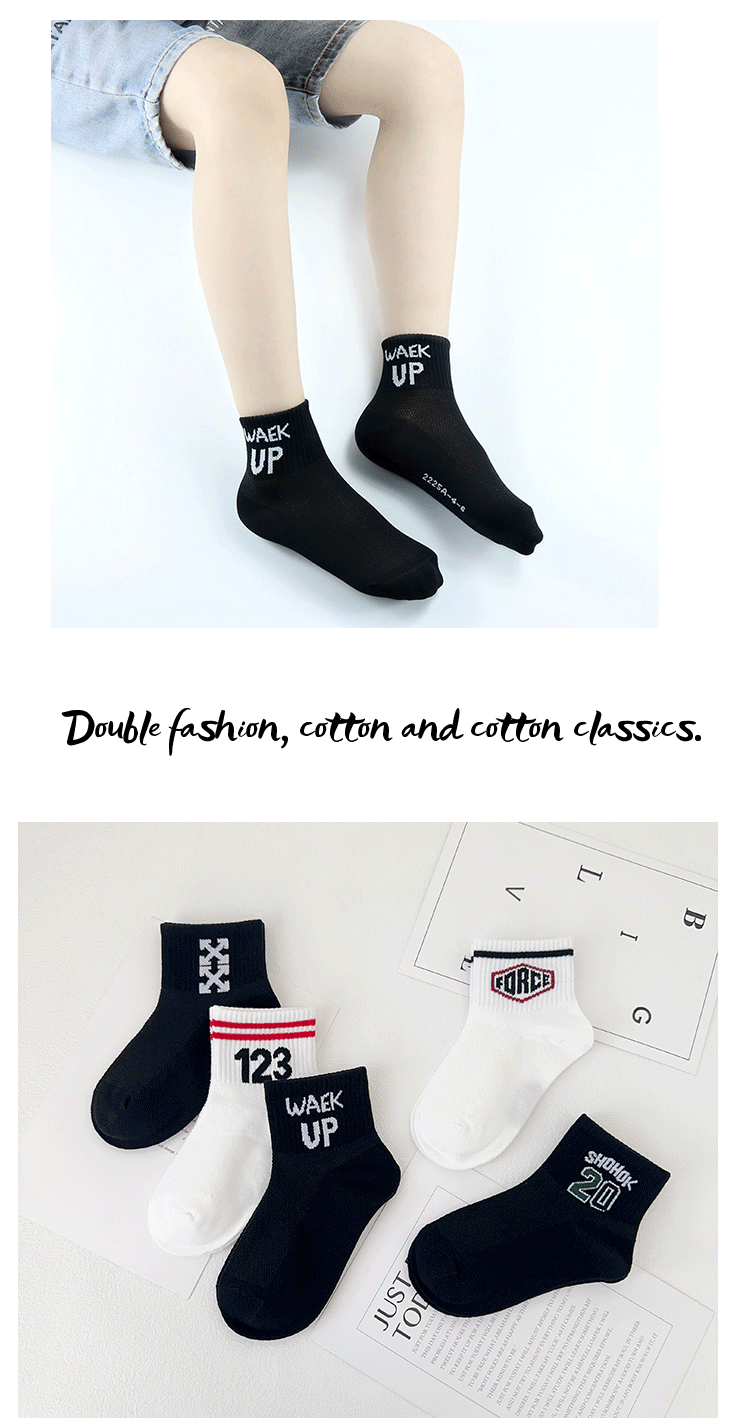 이 쌍 어린이 양말 여름 새로운 메쉬 통기성 유행 브랜드 편지 짧은 양말 빗 코튼 보이즈 스포츠 양말스토어 가기