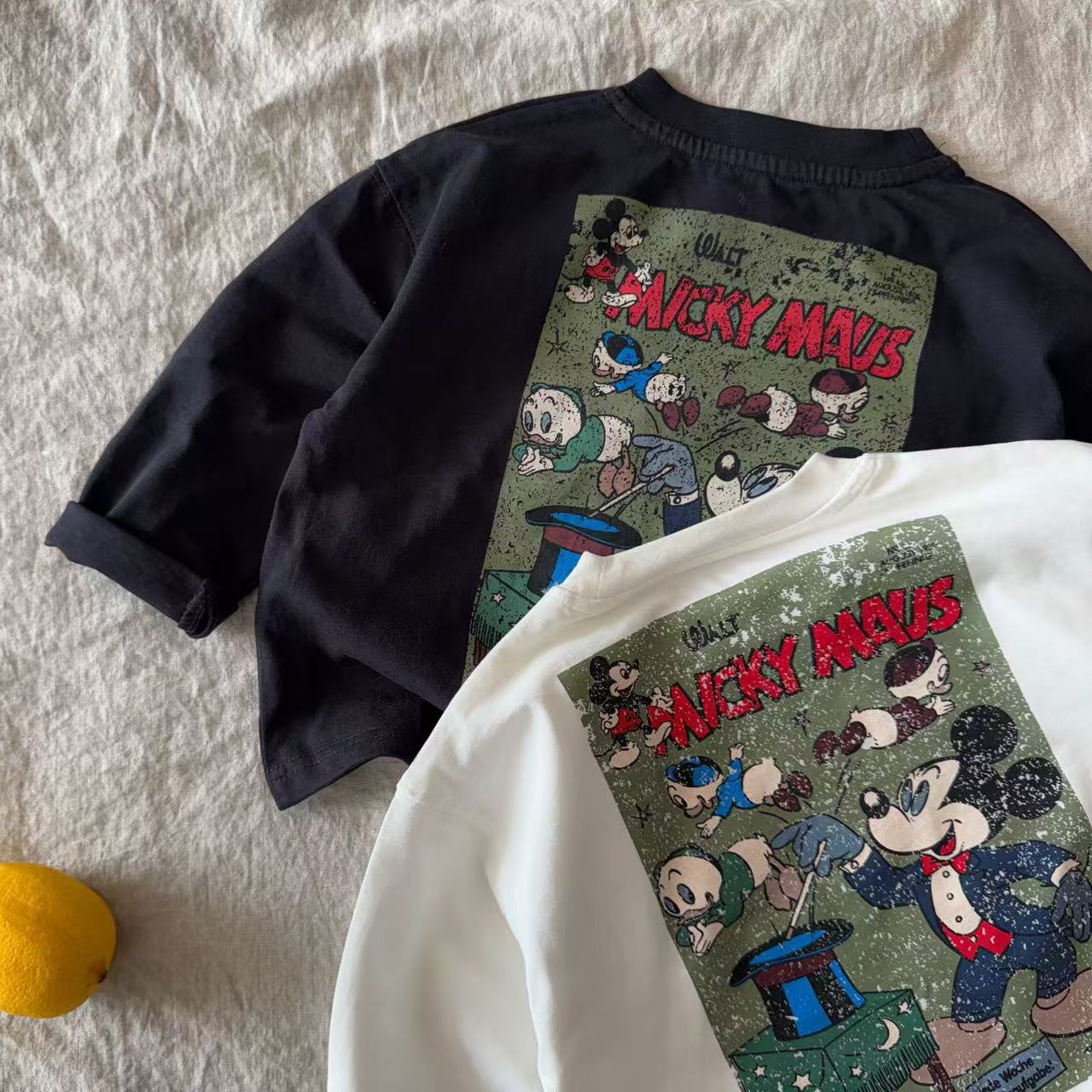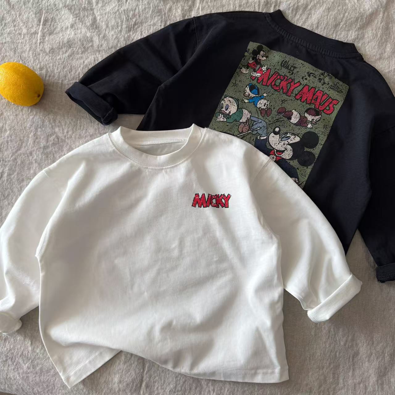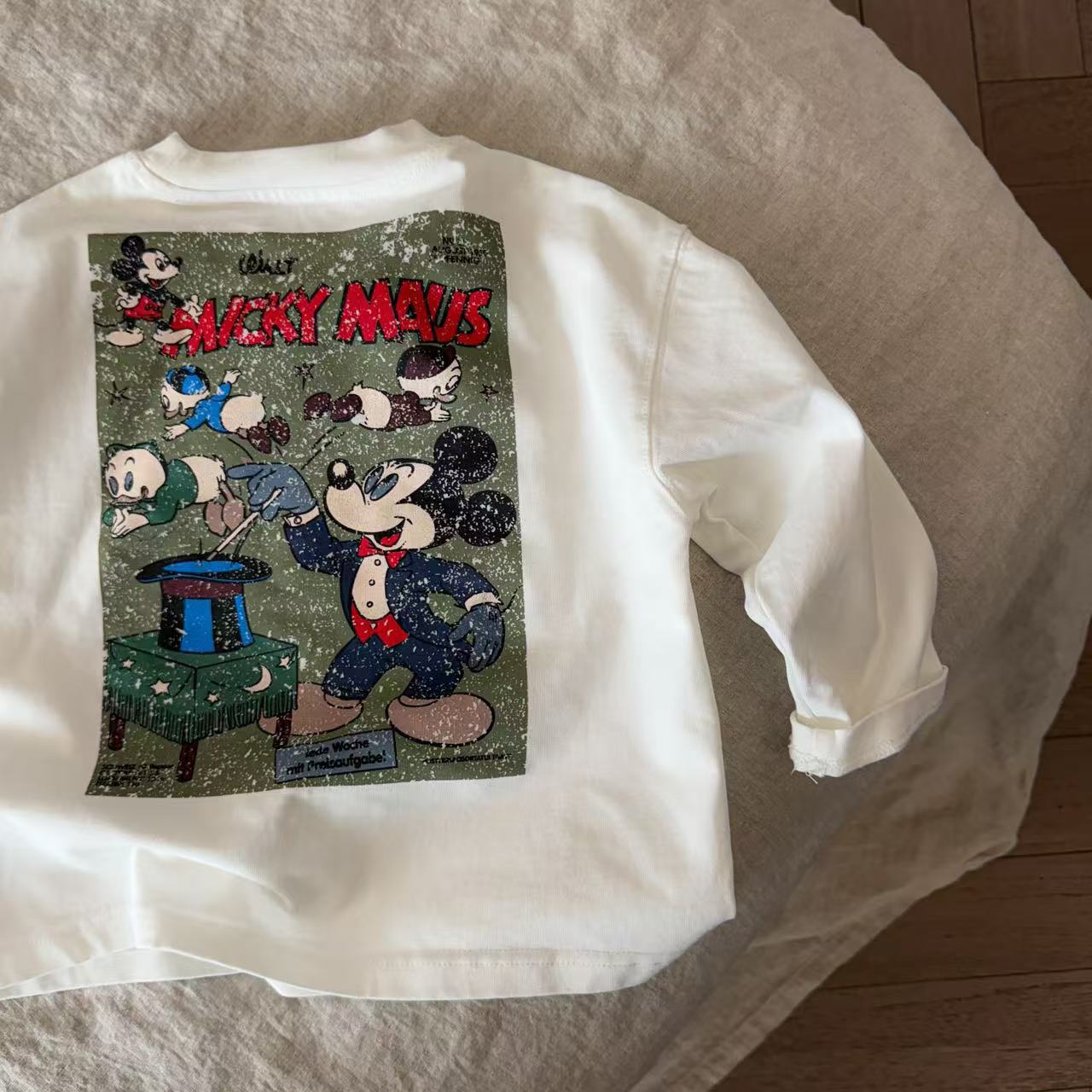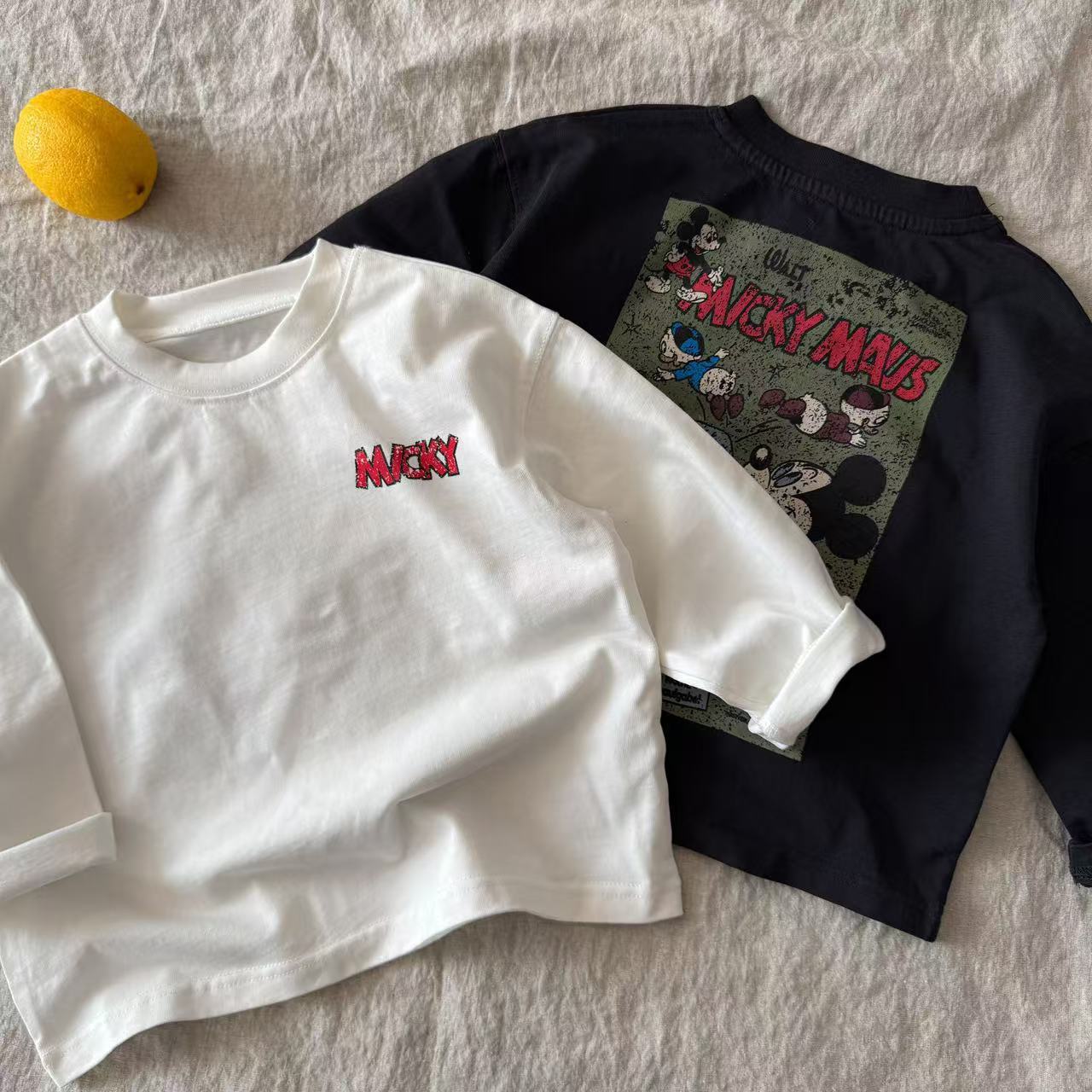 아동용 티셔츠 2025 가을 아동복 남아 여아 한국 스타일 루즈핏 프린트 빈티지 캐주얼 만능 상의 순면
